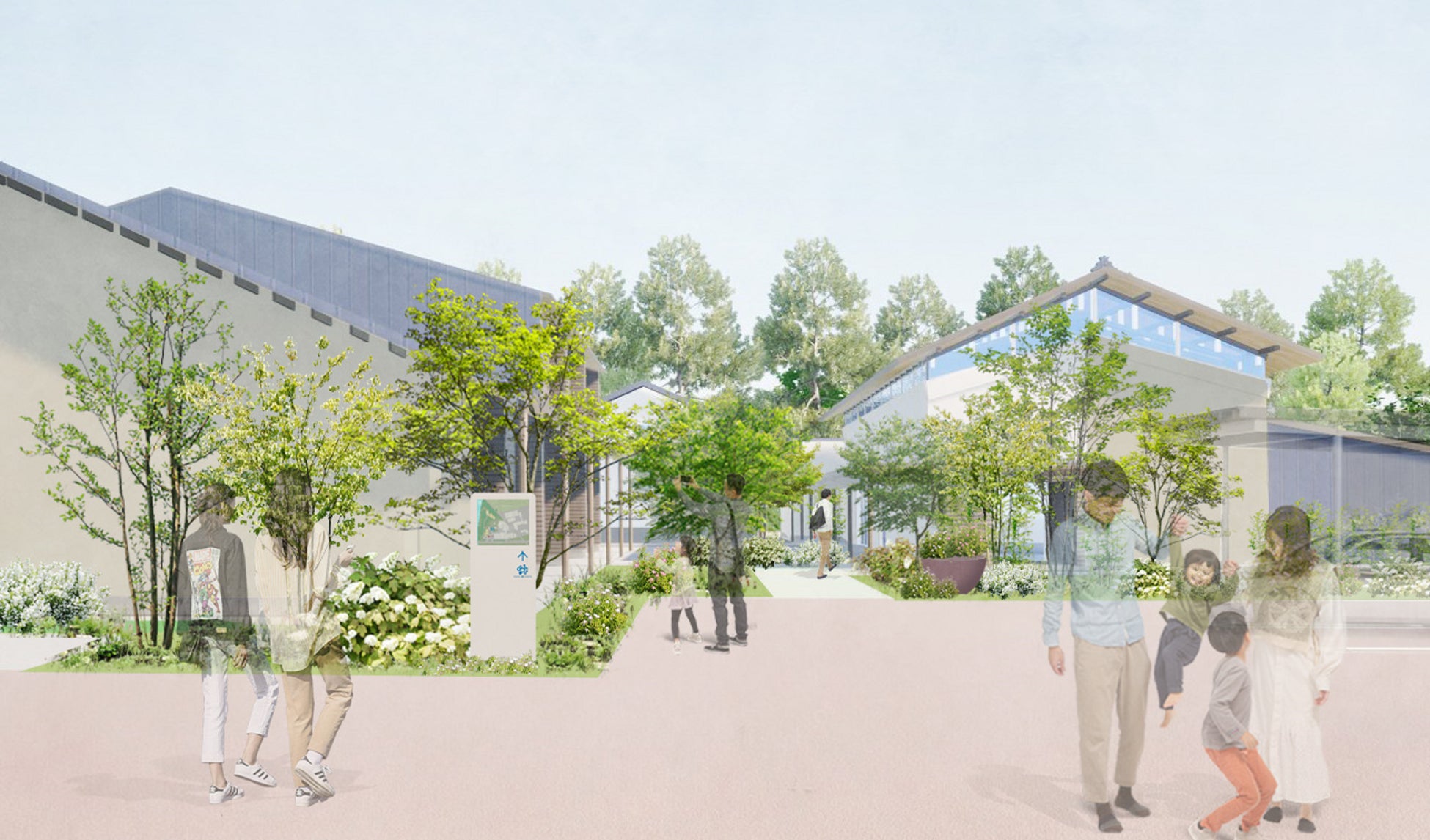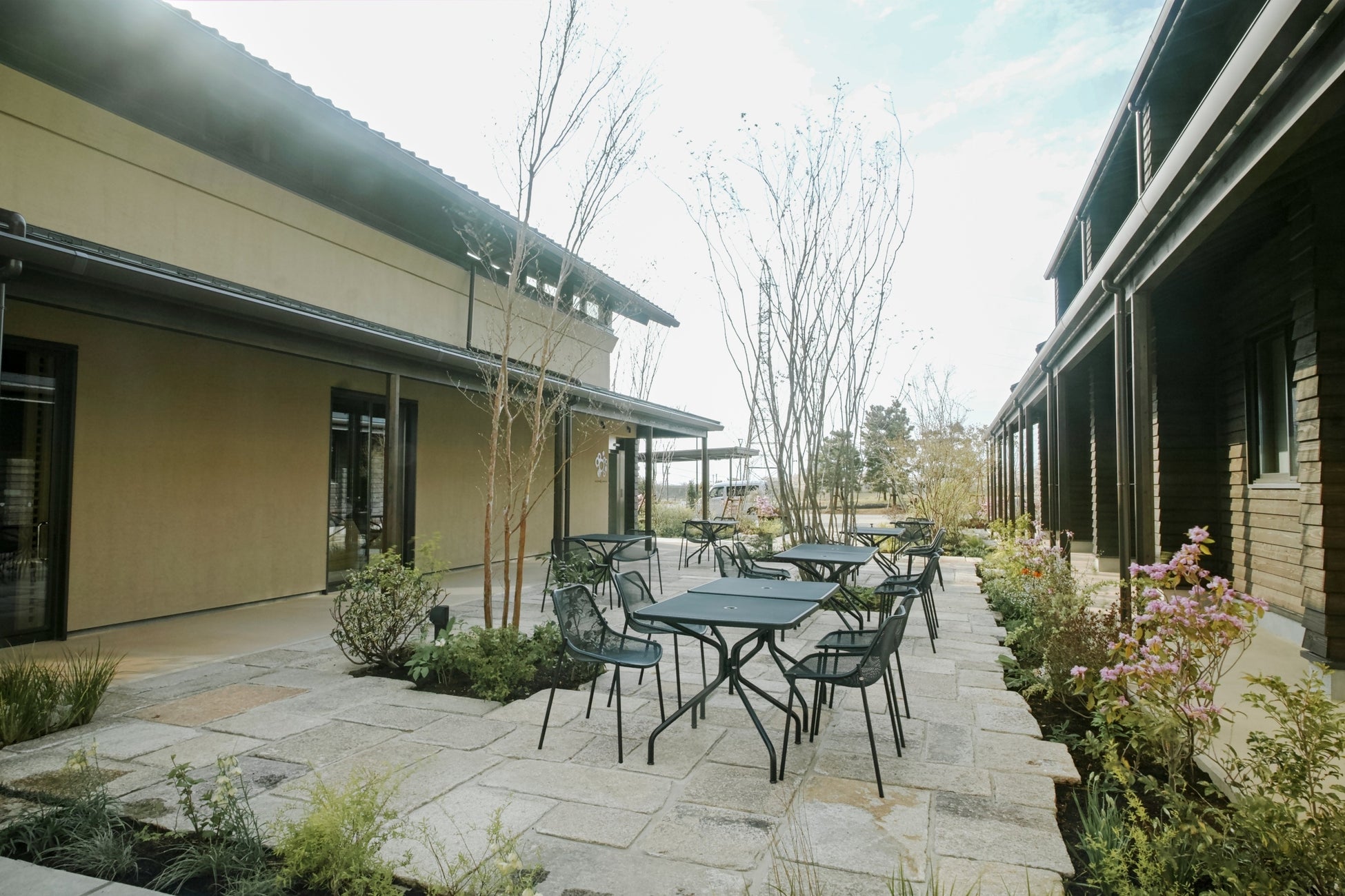 緑に囲まれた心地よい屋外空間。のんびり過ごす場所でもあり、キッチンカーを呼んだりマルシェをひらいたり。みんながたのしめる、にぎわいの場にもなります。