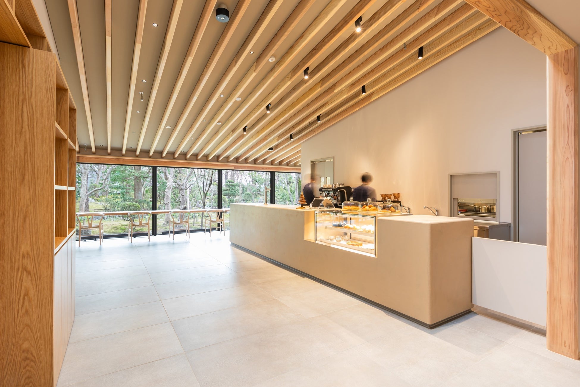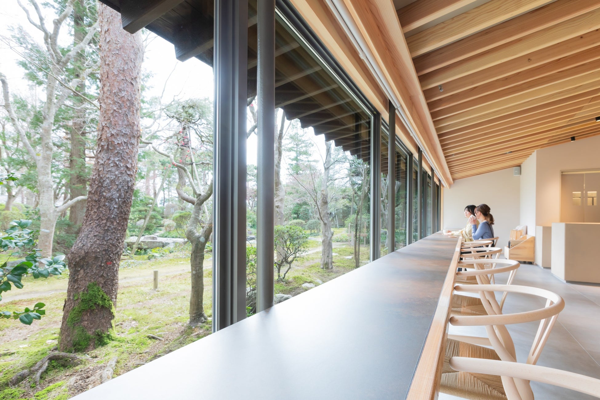 店内からは、京都の銀閣寺や天龍寺など、全国有数の庭園の修復を手がけた庭匠・田中泰阿弥が作庭した枯山水の日本庭園を眺めることができ、ゆったりとお過ごしいただける場所になっています。