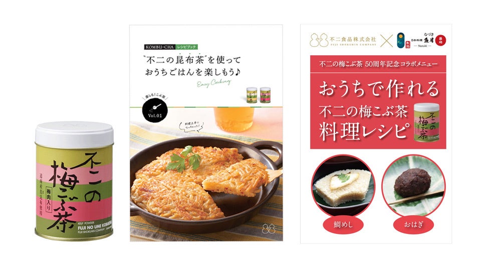 不二食品株式会社(本社:大阪市港区、代表取締役社長:藤井隆義)と日本料理 魚月-Nazuki-(所在地:東京都中央区/株式会社ムーンライト 代表:山本健太)は、「不二の梅こぶ茶」発売50周年を記念し、5月1日(日)~5月31日(火)の期間限定で、コラボレーション企画を実施します。日本料理 魚月-Nazuki-にて、不二の梅こぶ茶を使用した特別メニュー「鯛めし御膳」をご提供致します。さらに、『鯛めし御膳』をお召し上がりいただいた方全員に、「不二の梅こぶ茶50g缶+レシピブック」をプレゼント!不二の梅こぶ茶50周年記念限定メニューをこの機会に、ぜひご賞味くださいませ。