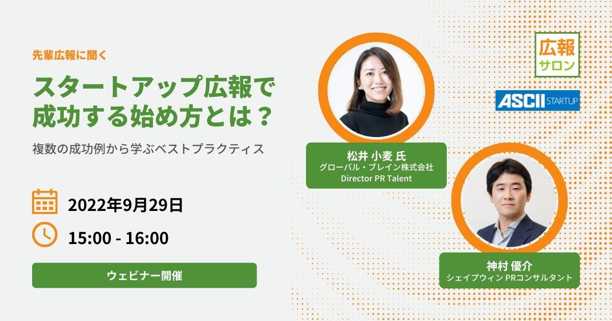 このセミナー・ディスカッションでは、ベンチャーキャピタルでハンズオンによる投資先スタートアップの広報活動を支援する松井小麦さんをゲストに、スタートアップ企業が広報活動を始めるアーリー期にどのような準備をし、どのような戦略を立てるべきなのかなど、広報PR活動の真髄を探ります。