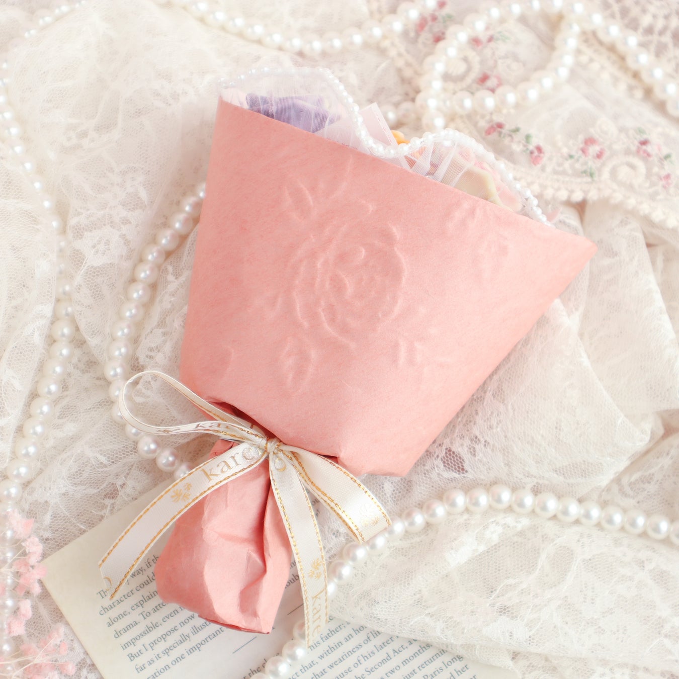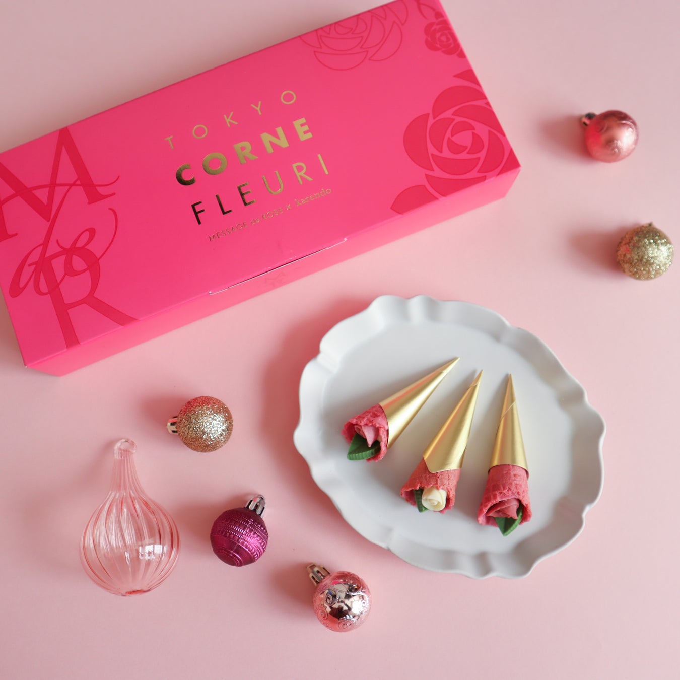 まるで花束!?小さくて可愛いバラとリーフのチョコレートをコーンで包みこんだ花束のようなスイーツです。コーンの中にもホワイト・ビター・ストロベリーの濃厚なチョコレートが入っており、カリッとしたコーンの食感とチョコレートのなめらかさが絶妙な味のハーモニーを奏でます。可愛らしさと美味しさを兼ね備えた、食べてしまうのがもったいないほどの仕上がりです。嬉しい個別包装は、プチギフトや贈り物に最適です。