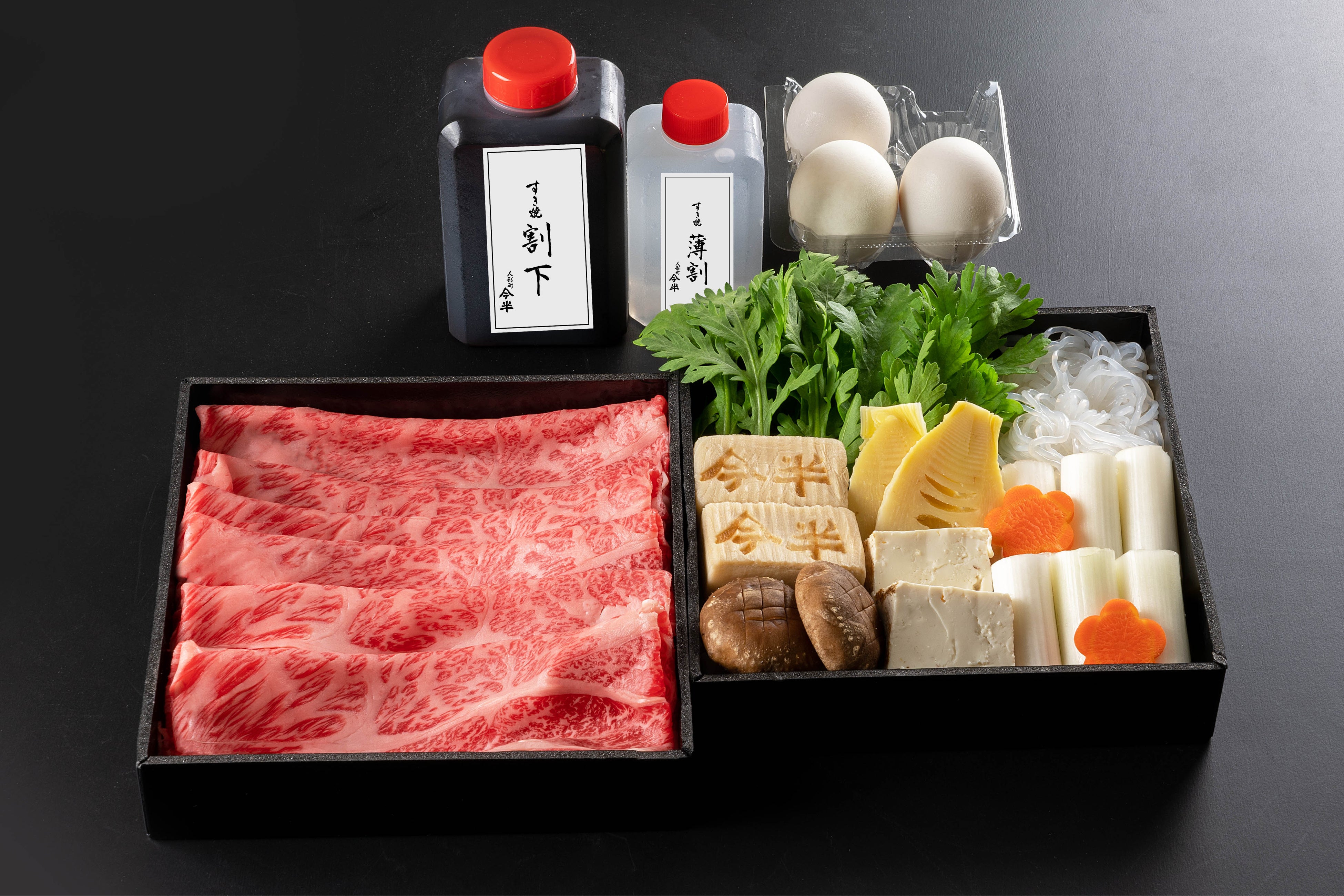 ◆ 人形町今半の黒毛和牛と野菜のすき焼き食材セット(白米付き)2名様分