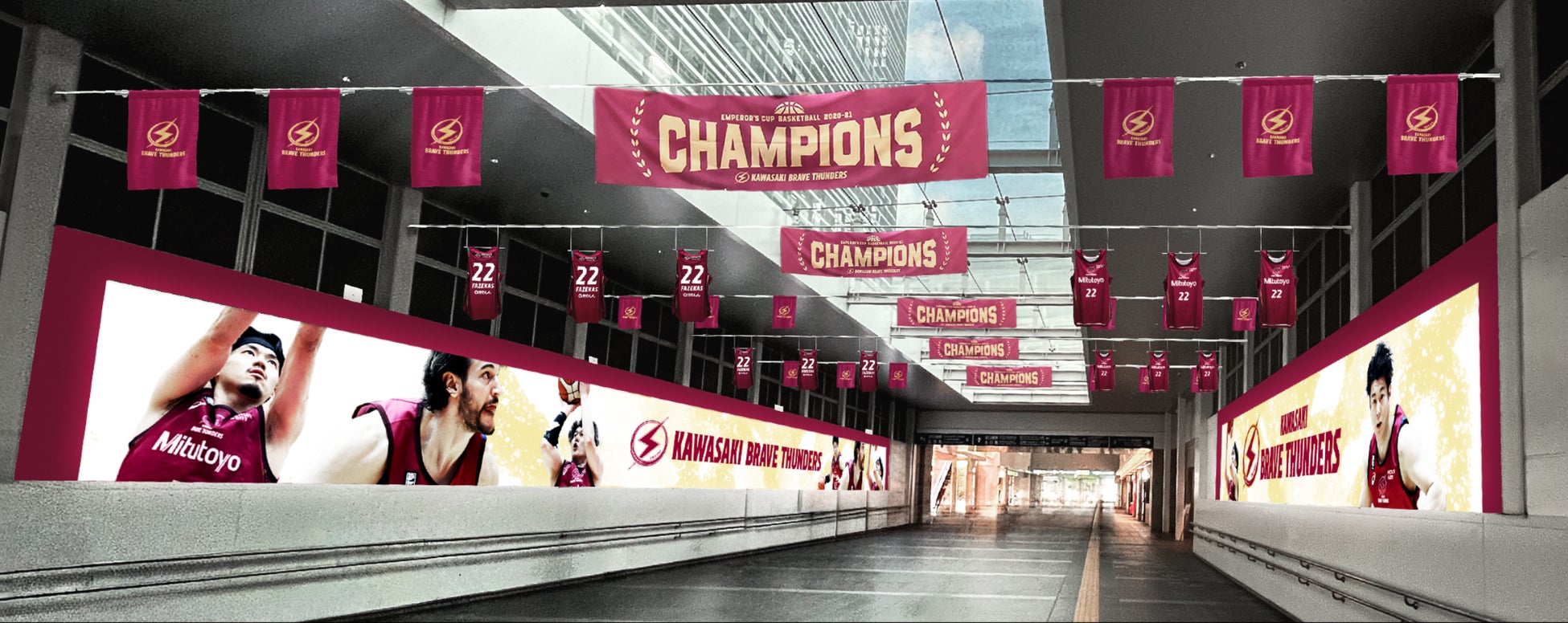 JR川崎駅北口通路は、川崎ブレイブサンダースの運営母体であるDeNAが推進する「川崎新!アリーナシティ・プロジェクト」実現の折には多くの来場者を出迎えるひとつの玄関口となることが想定されており、この度のビジョン新設に至りました。また川崎ブレイブサンダース直営の広告媒体として、新たな収益の柱とすべく今後積極的に広告枠の販売をおこなってまいります。
