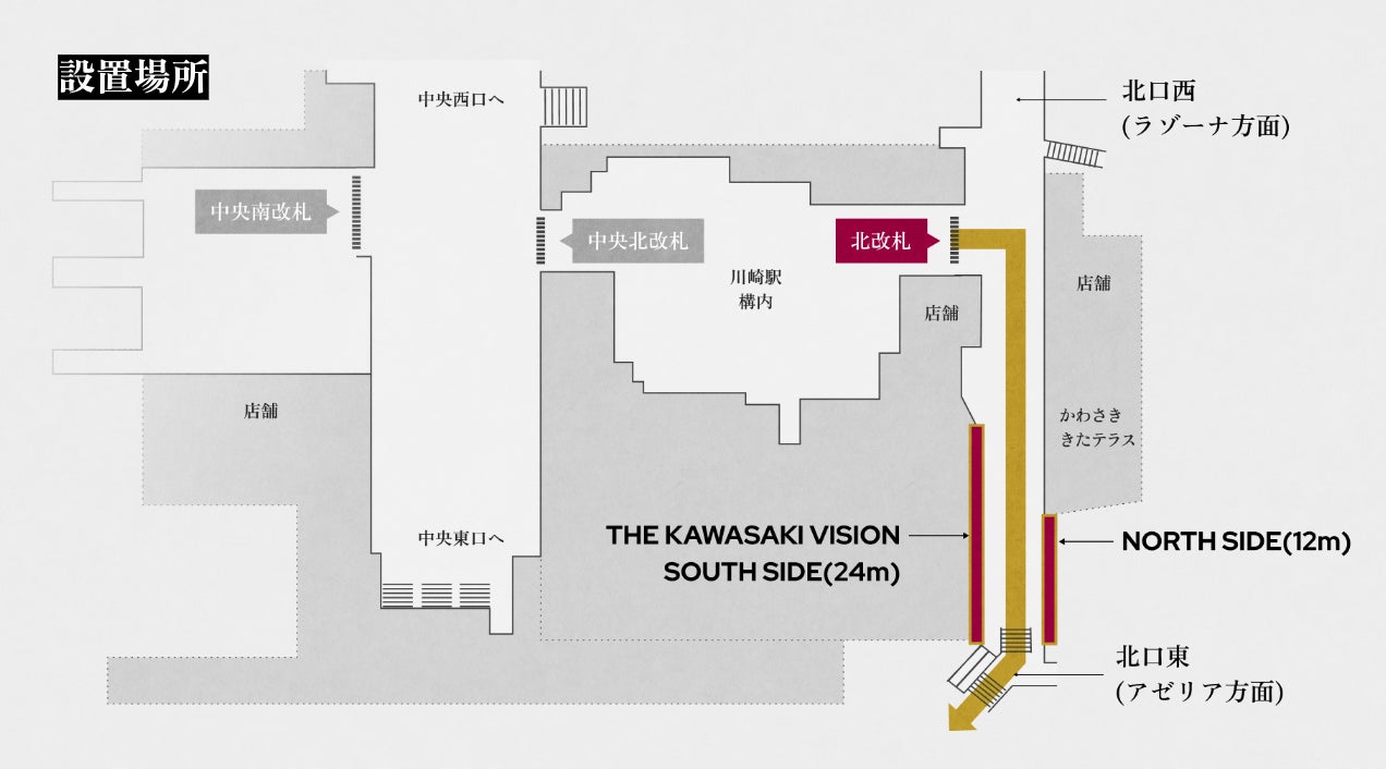 今回、JR川崎駅北口通路に「THE KAWASAKI VISION」を設置できたことを大変嬉しく思います。