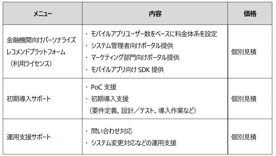 ■「金融機関向けパーソナライズレコメンドプラットフォーム」の内容・価格