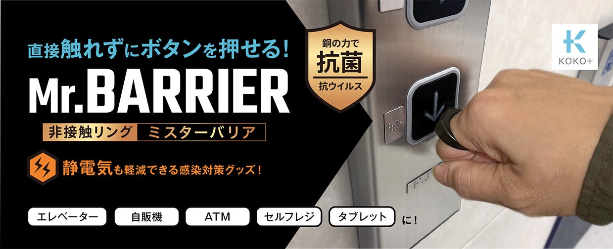 銅の力で抗菌・抗ウイルス!導電性樹脂で直接触れずにボタンを操作でき、静電気も軽減!非接触リング『ミスターバリア』の実用新案登録が完了!