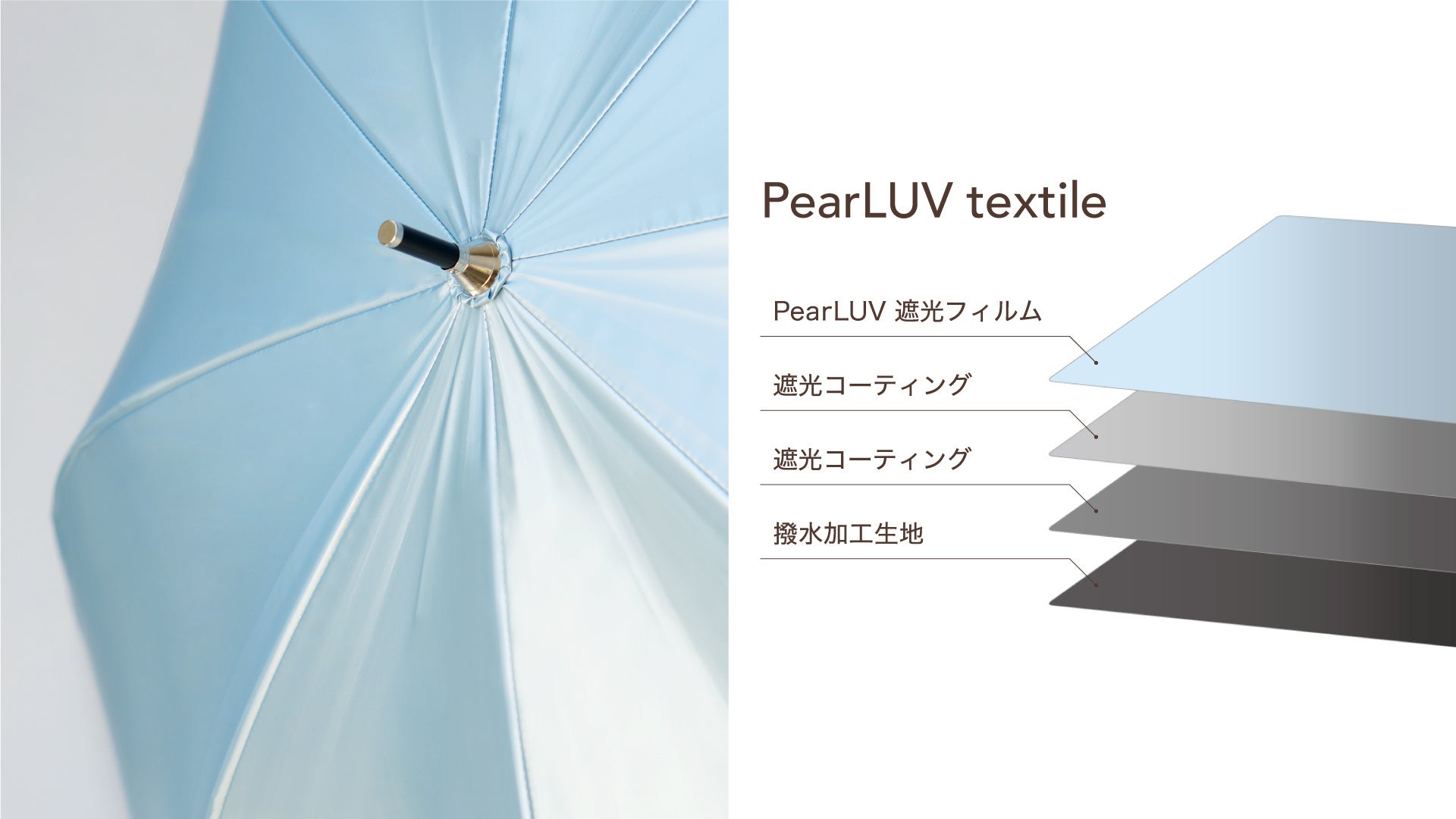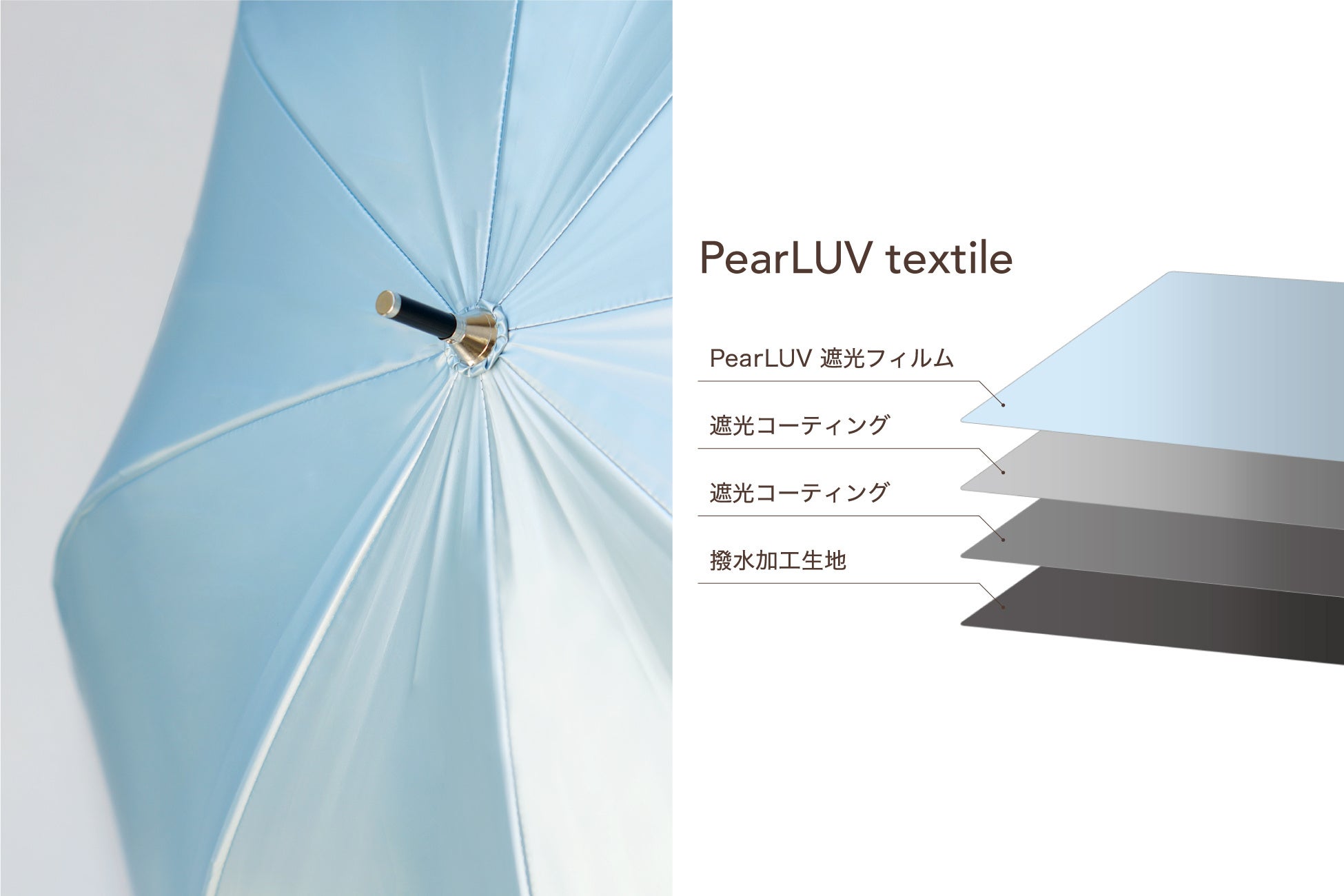 日射しも味方にして、美しいきらめきを涼しく快適に楽しむ、これまでには無かった新しい発想と最高水準の技術力を集約して開発いたしました。パールのようなきらめきをまとった美しい光沢感。最高水準の遮光率、UVカット率を実現し、PearlとUV(パールとユーブイ)を合わせた晴雨兼用傘、PearLUV「パールブ」シリーズが新登場します。