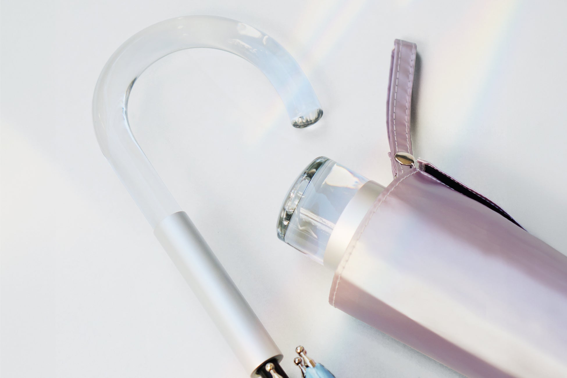 手元にもこだわり、透明度の高い高品質なクリア素材にマットシルバーを合わせて、涼しげで上品な印象に仕上げました。