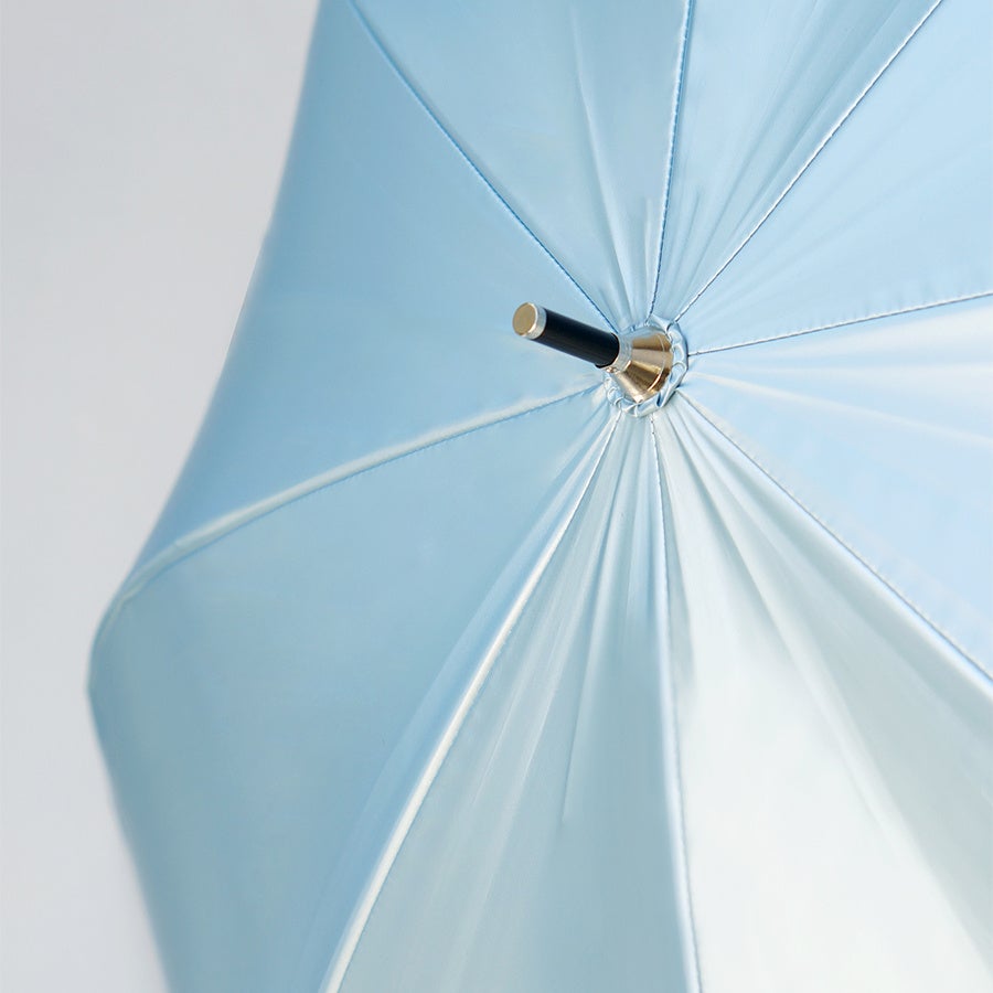 日射しをしっかり防いでくれる長傘タイプ。パールの生地感を綺麗に魅せるシルエットや、手元のクリアパーツが視線を引き付けるデザイン。