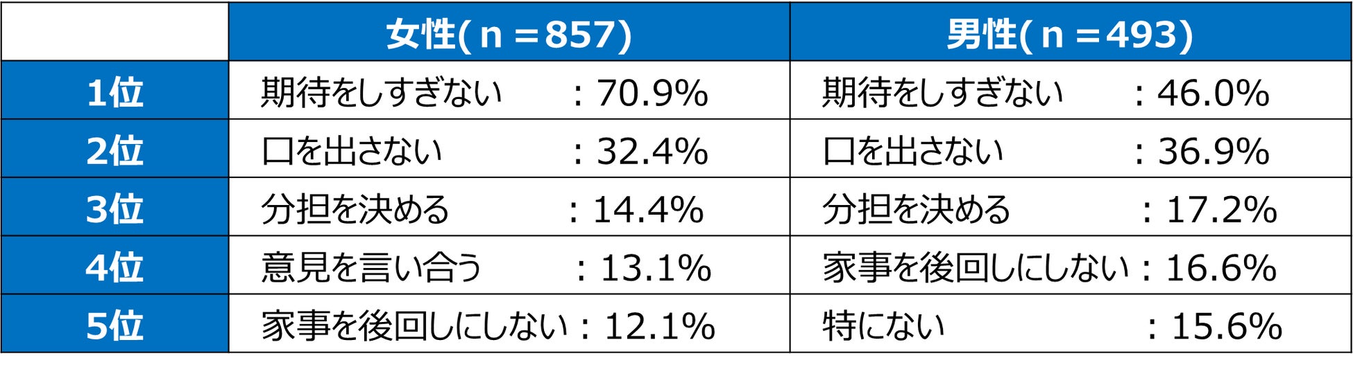 ■家事で配偶者とケンカをしない秘訣は、男女ともに「期待をしすぎないこと」
