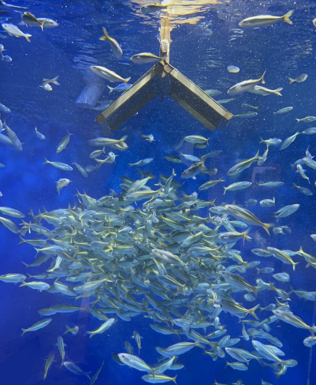 新酒の完成とその成熟具合を知らせるため、造り酒屋が杉玉を飾る風習にちなみ、水族館へ入場してすぐの「大洗の生物1水槽」では、“杉玉”ならぬ“タカベ玉”が皆様をお出迎えいたします。