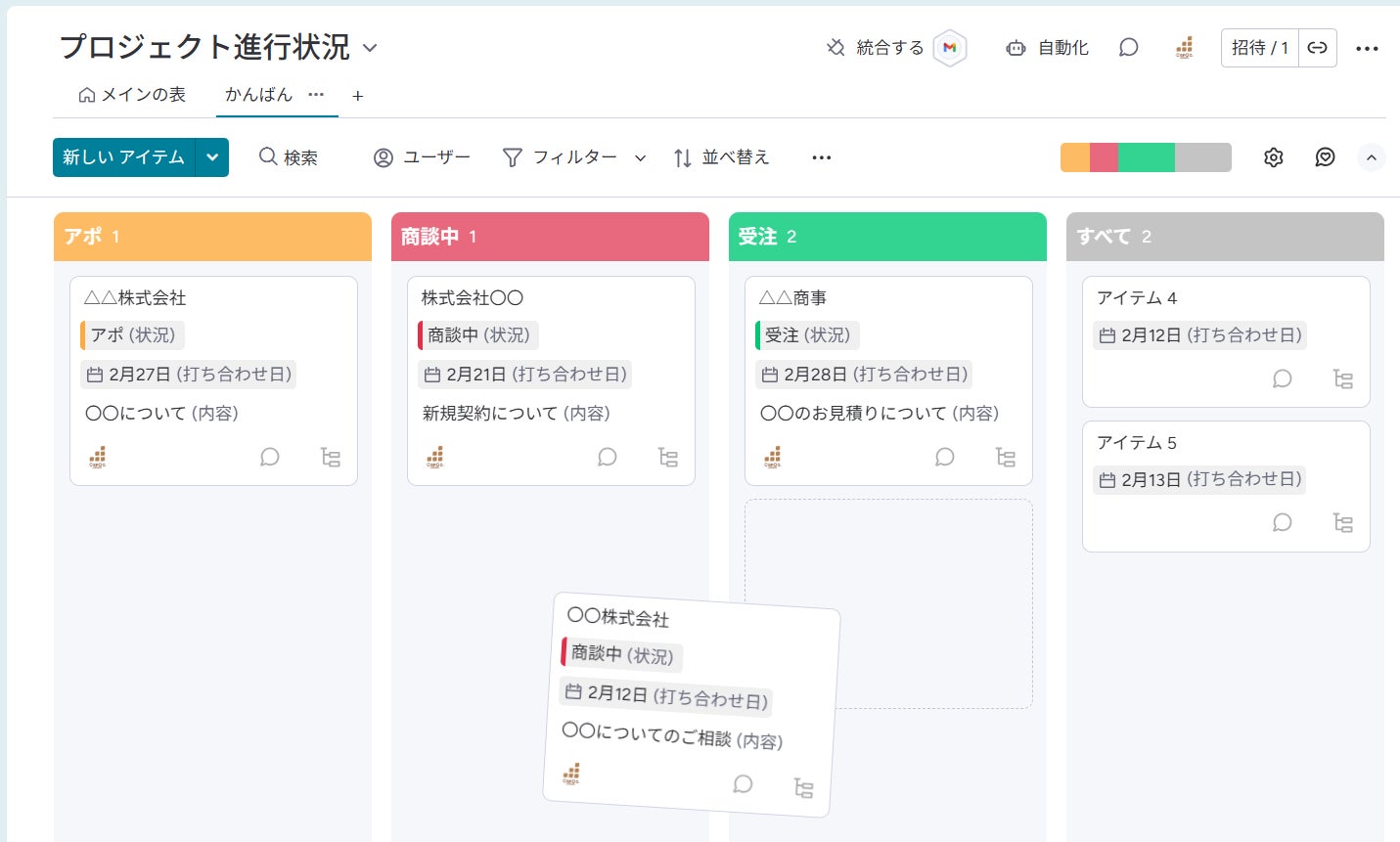 かんばんボード機能:タスクの進捗状況を直感的に管理し、チーム全体の作業フローを可視化