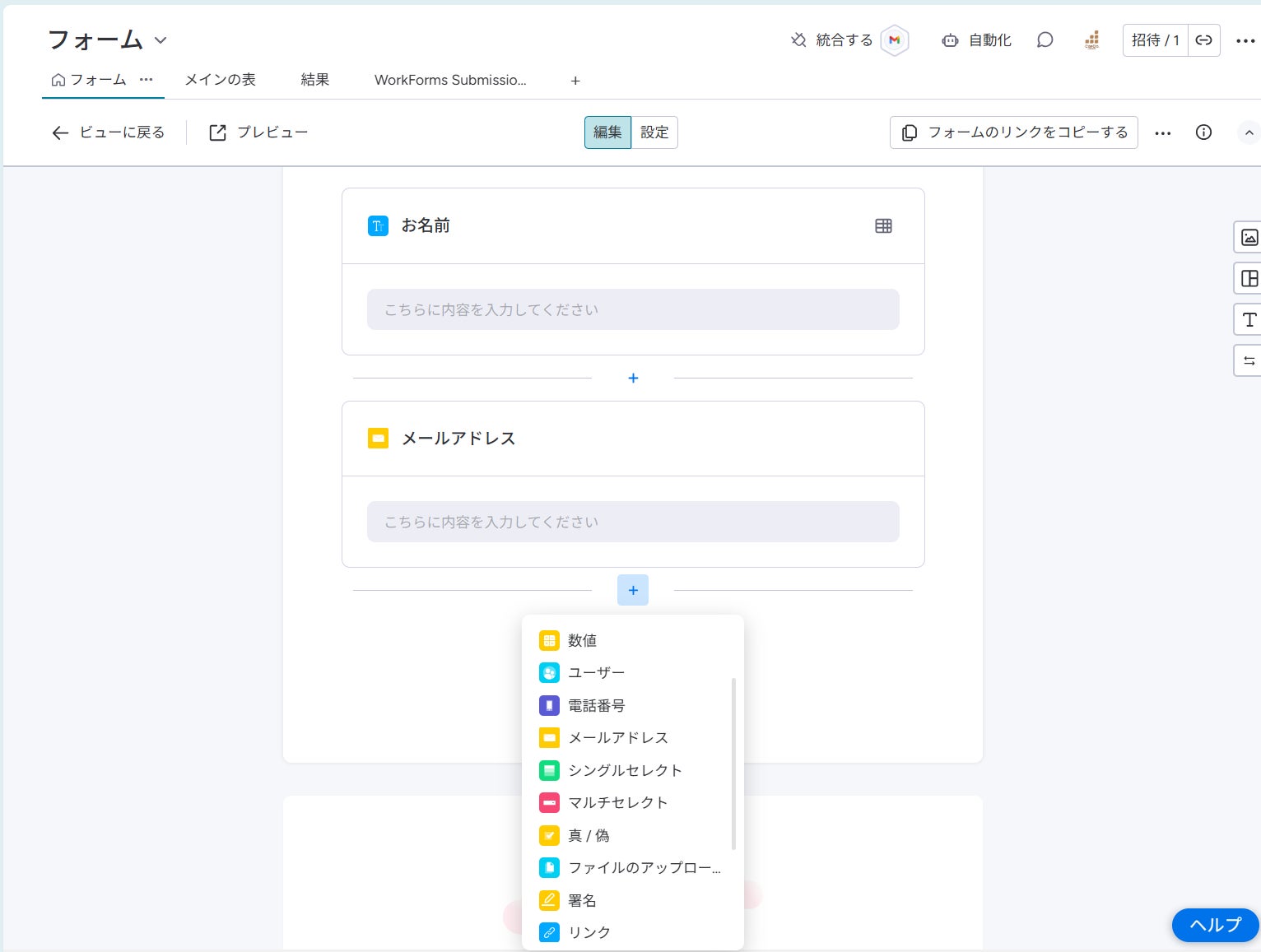 フォーム機能:簡単操作で多様なフォーム形式に対応した設問が設置可能。データ入力の手間を削減し、社内外からの情報収集をスムーズに