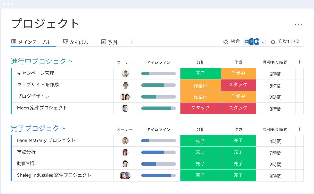 自動化(iPaaS)機能:他のツールを導入せずとも、monday.comの自動化機能を使って、繰り返し作業やステータスの変更等を自動化し、手作業を削減