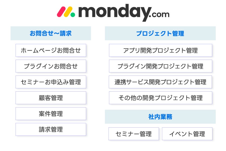社内においても、複数のクラウドサービスを活用しながら業務の効率化を進める中で、企業が抱える多様な業務課題に対し、より幅広いソリューションを提案できるよう、2024年よりmonday.comの試験運用を開始しました。
