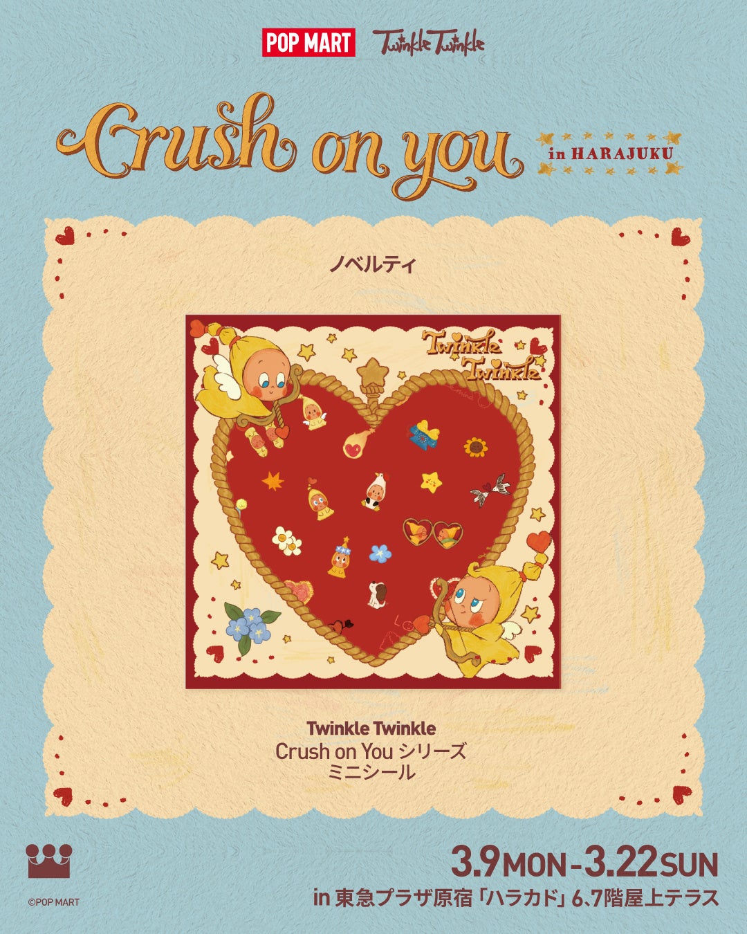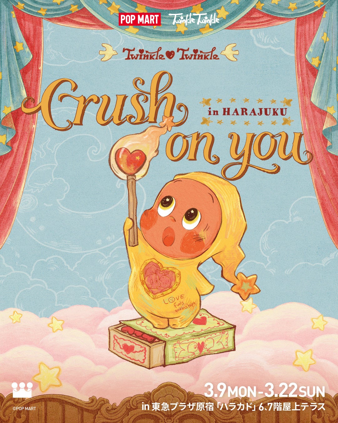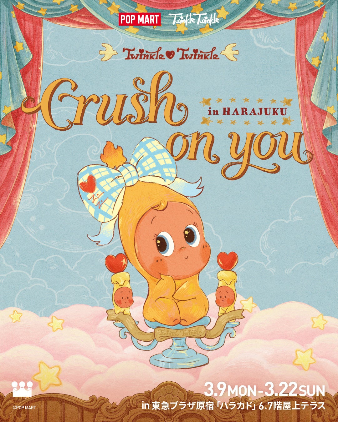世界のポップカルチャーとエンターテイメントをリードする、アートトイブランドPOP MART(ポップマート)の日本法人である、株式会社POP MART JAPAN(東京都港区、代表取締役:文 徳一)が、3月9日(月)より、「Twinkle Twinkle Crush on You Event」を東急プラザ原宿「ハラカド」にて開催いたします。