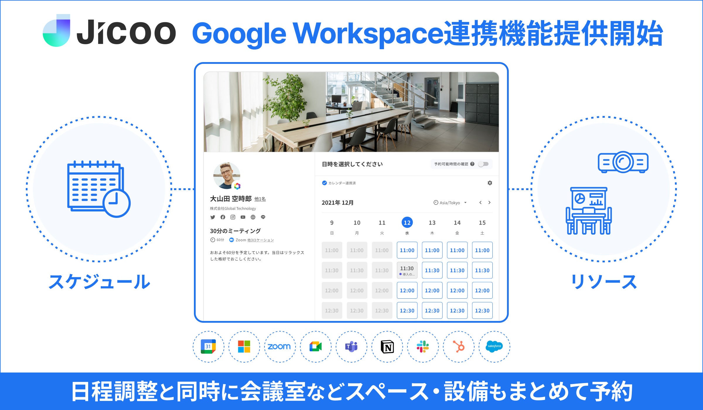 Jicoo(ジクー)、日程調整と同時に会議スペースや備品の予約を自動で行うGoogle Workspace連携機能の提供を開始