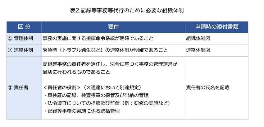 なお、記録等事務代行の委託を受けるためには、申請書の提出にあたって以下の委託要件をそれぞれ満たさなければなりません(表2.3)。