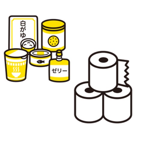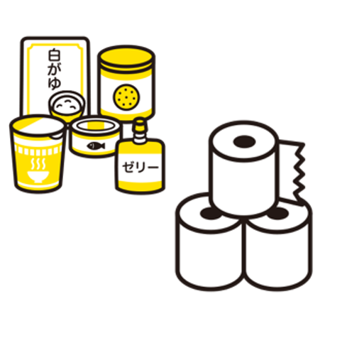 自治会・町会やマンション管理組合による備蓄では、非常用簡易トイレや食料品を賄いきれません。自分の分は自分で準備しましょう。食料については、いつもの食べなれたレトルト食品や缶詰などを多めに購入し、ローリングストック*による備蓄がおすすめです。