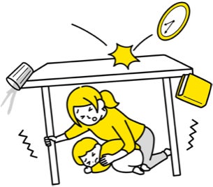 大きな揺れを感じたら、体を小さくし、状況に応じて机、布団、枕などで頭を守り、揺れが収まるまでじっとしていることが重要です。火を消す・ガスの元栓を閉める、避難経路を確保する、家族の安全を確認するなどは、揺れが収まってから。