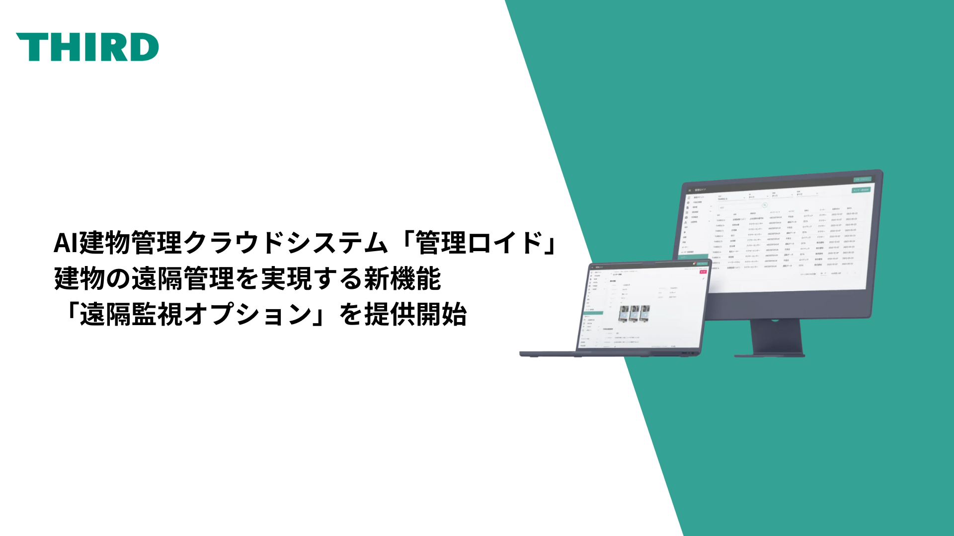 THIRDのAI建物管理クラウドシステム「管理ロイド」、中央監視装置と外付けセンサー連携により建物の遠隔管理を実現する新機能「遠隔監視オプション」を提供開始