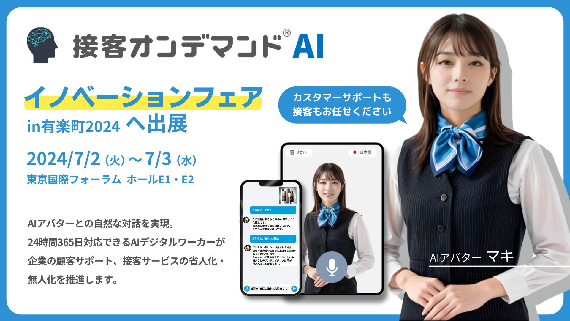 話しかけるだけで何でも解決!接客AIアバター『マキさん』こと【接客オンデマンドAI】がイノベーションフェア2024へ出展