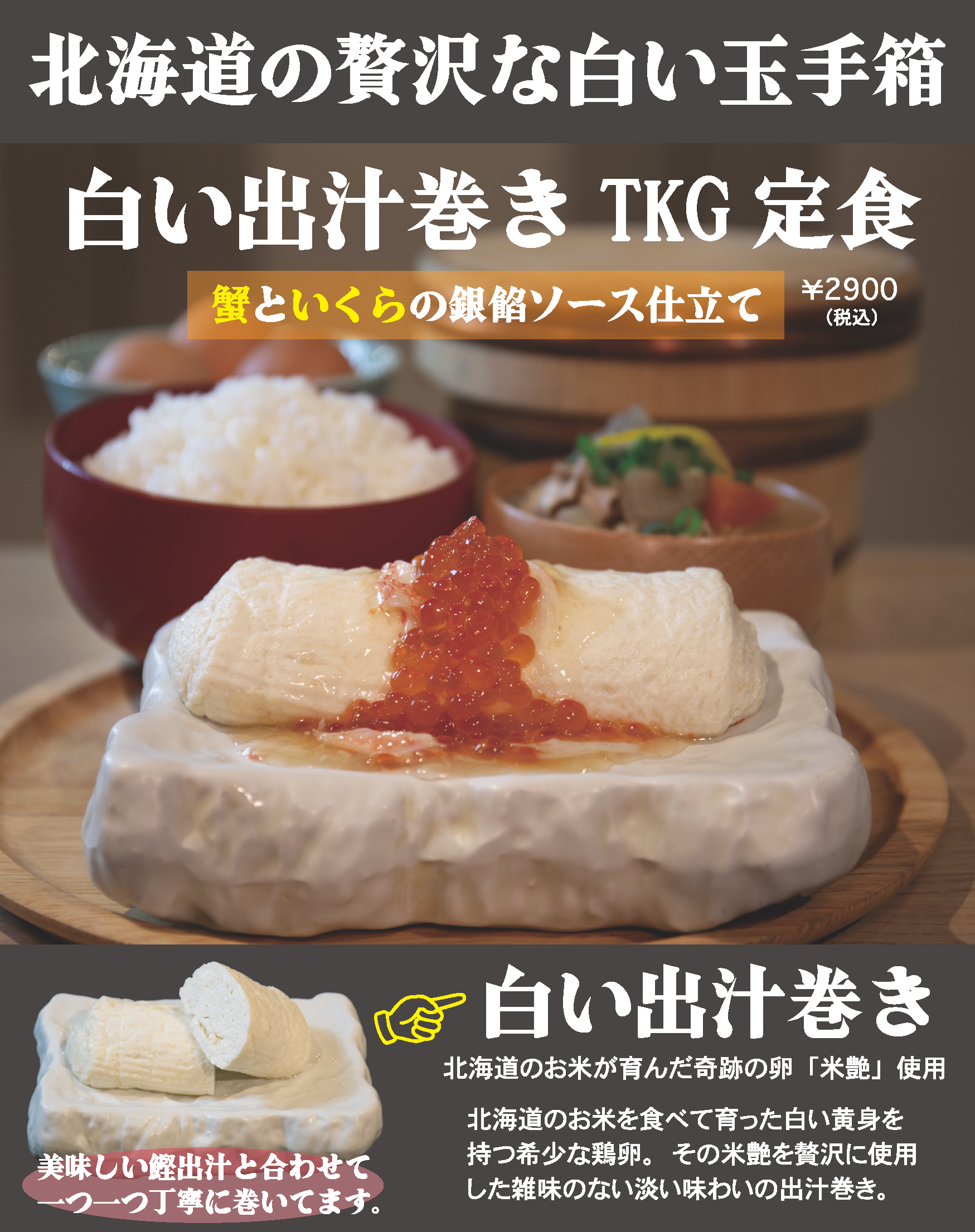 『白×白』が織りなす、冬のごちそうTKG 「白い出汁巻きTKG定食」