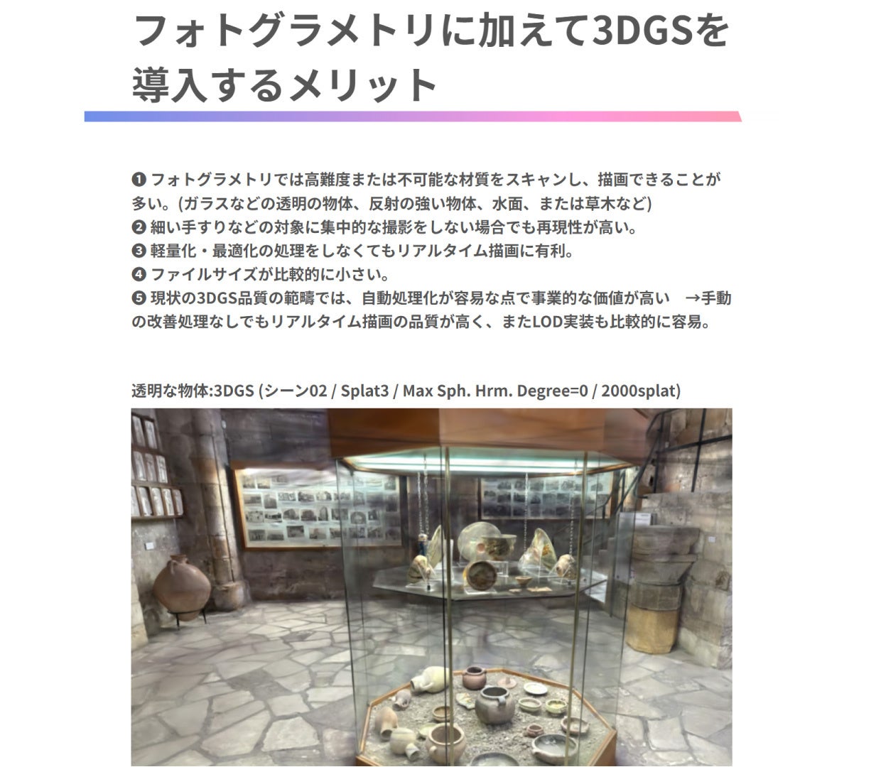 こうした背景から、3DGSは3D関連業務で使用する標準的な技術の一つとされる時期にあると考えています。