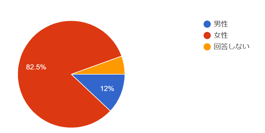 性別・職業:80%以上が女性、職業は高校生、大学生・短大生・専門学生・予備校生が多く、女性の学生が最も多い結果となりました。