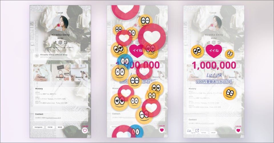 【1回押すだけで1,000,000いいね!】プロフィールサイト「lit.link」、登録者100万人記念で期間限定「100万いいねボタン」を設置。~メインユーザーのZ世代にアンケートを実施。~