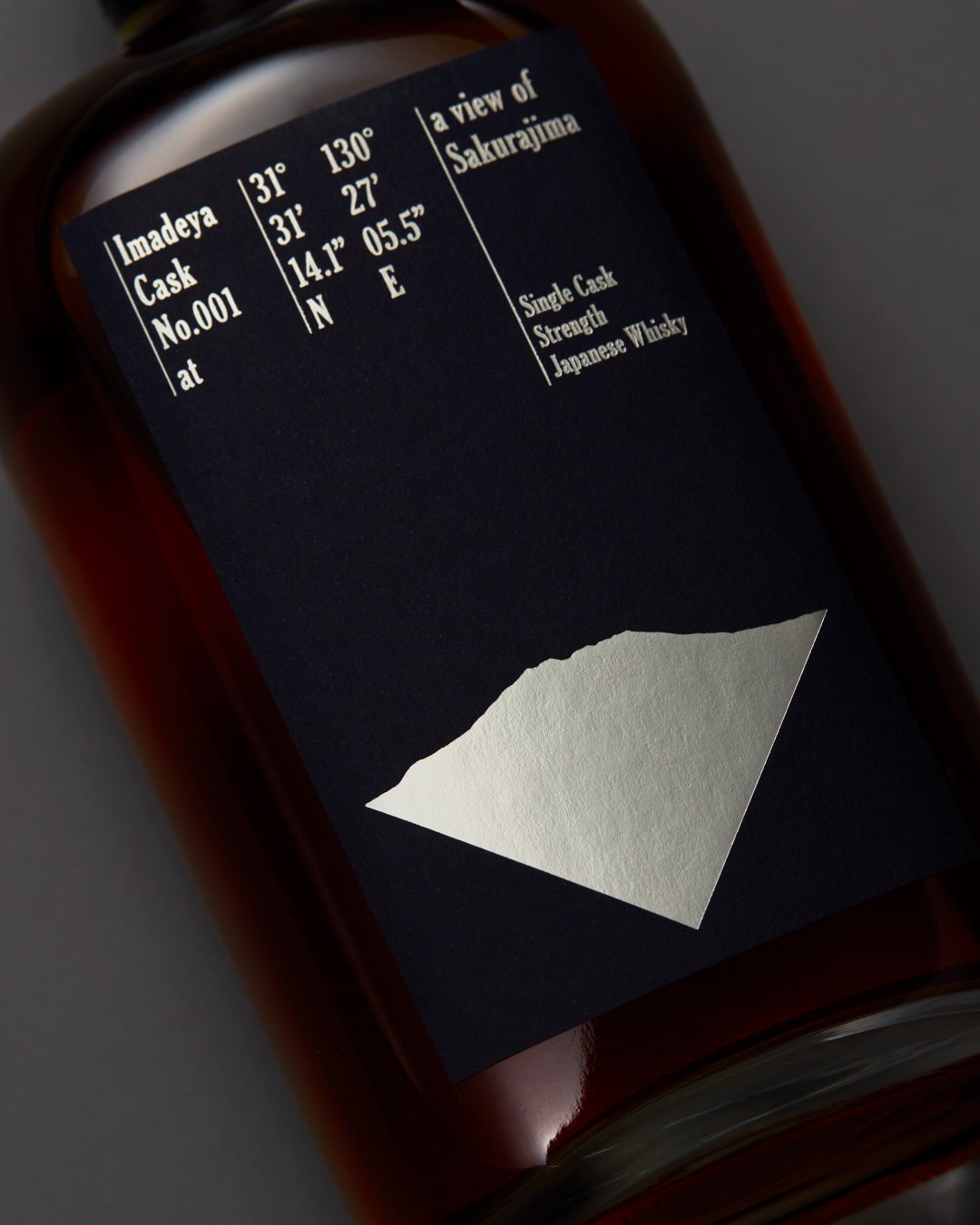 今回のシングルカスク・ウイスキーはIMADEYA が2021年より所有していた樽の1つで、御岳蒸留所内の熟成庫にて3年間熟成されたもの。ラベルのモチーフは御岳蒸留所から望める桜島(御岳)。「熟成する樽によって味わいが変わる」とされるシングルカスク・ウイスキーを「見る角度によって表情が変わる」と評される桜島になぞらえています。