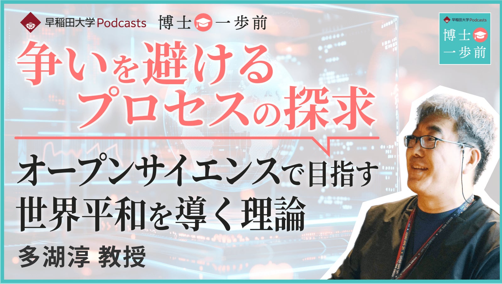 早稲田大学(東京都新宿区、総長:田中愛治)は、Podcast番組「博士一歩前」の新エピソードとして、政治経済学術院の多湖淳教授をゲストに『国際政治を科学する。理論とデータで導く国際平和への処方箋』の配信を開始しました。