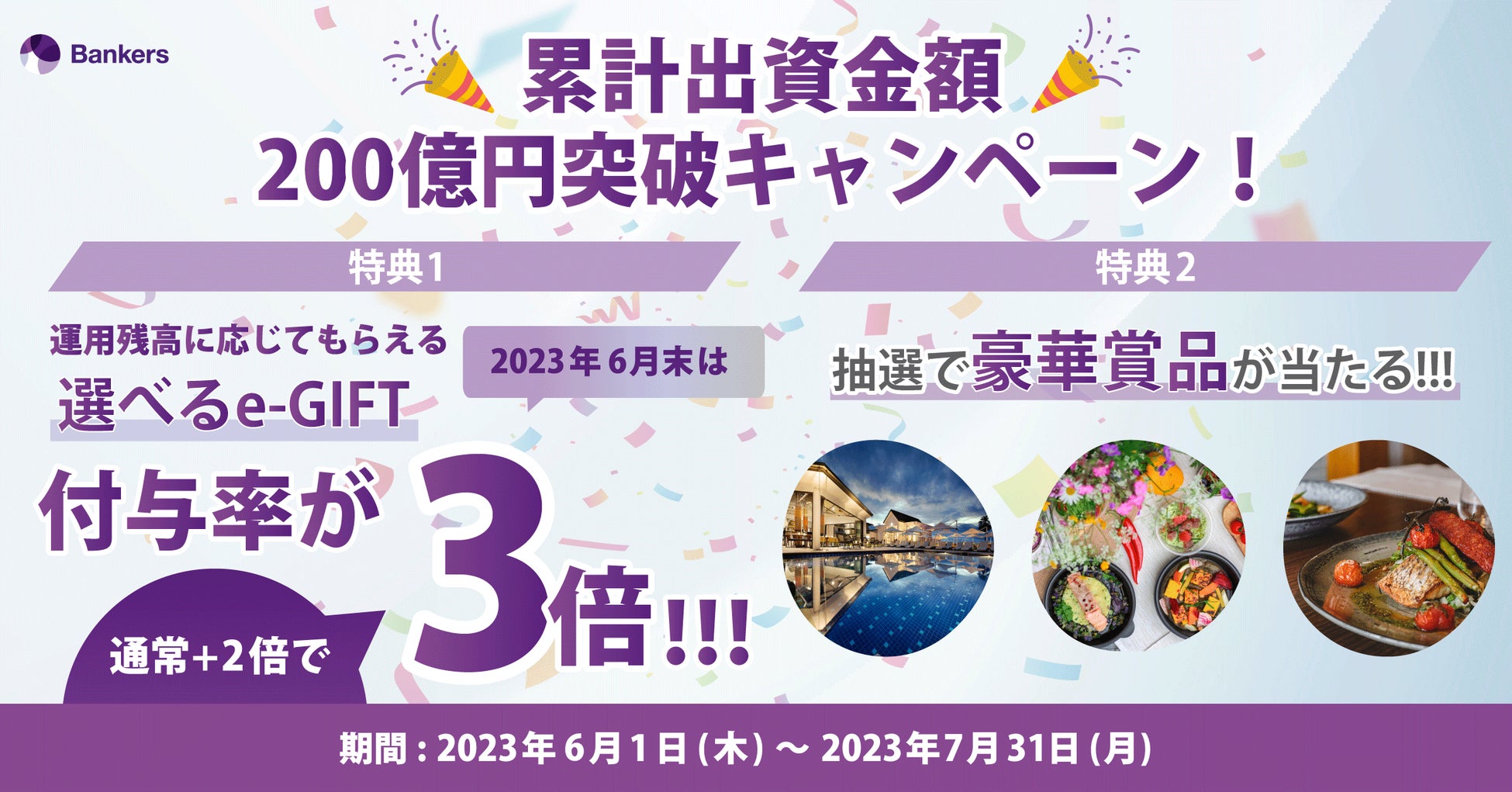 「Bankers(バンカーズ)」業界最速*で累計出資金額200億円突破!記念キャンペーンも開催決定