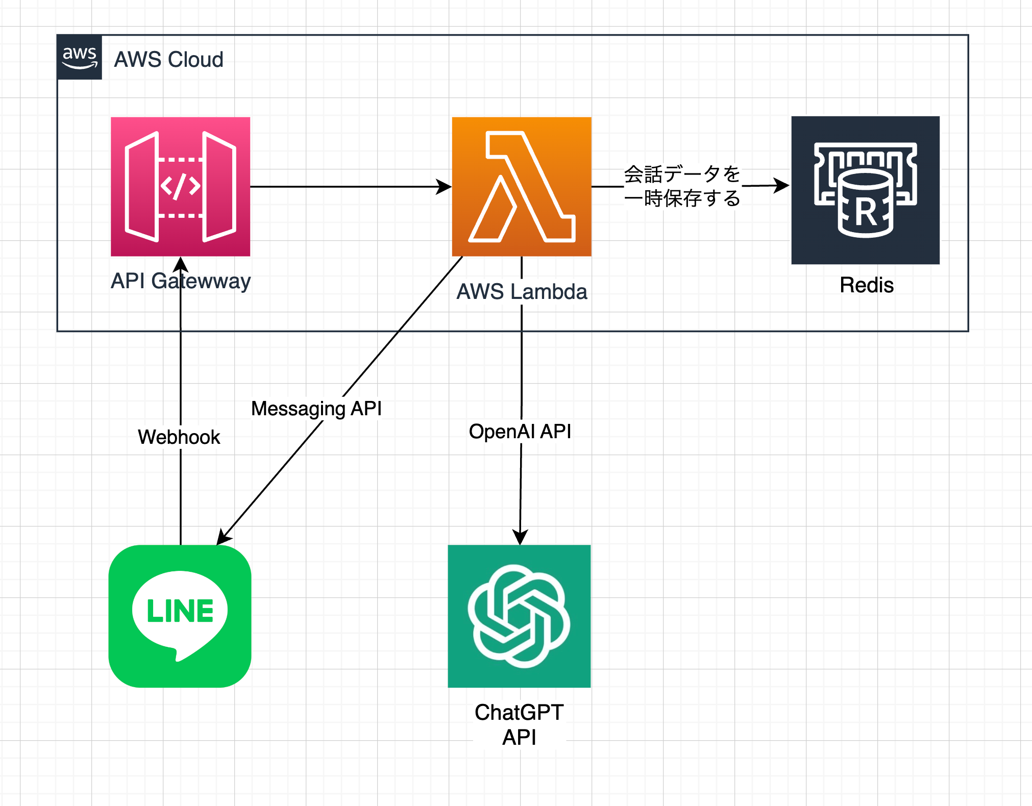 Webhookによる転送: LINE の Webhook 機能を使用して、メッセージを AWS Lambda などのサーバーレス関数に転送します。