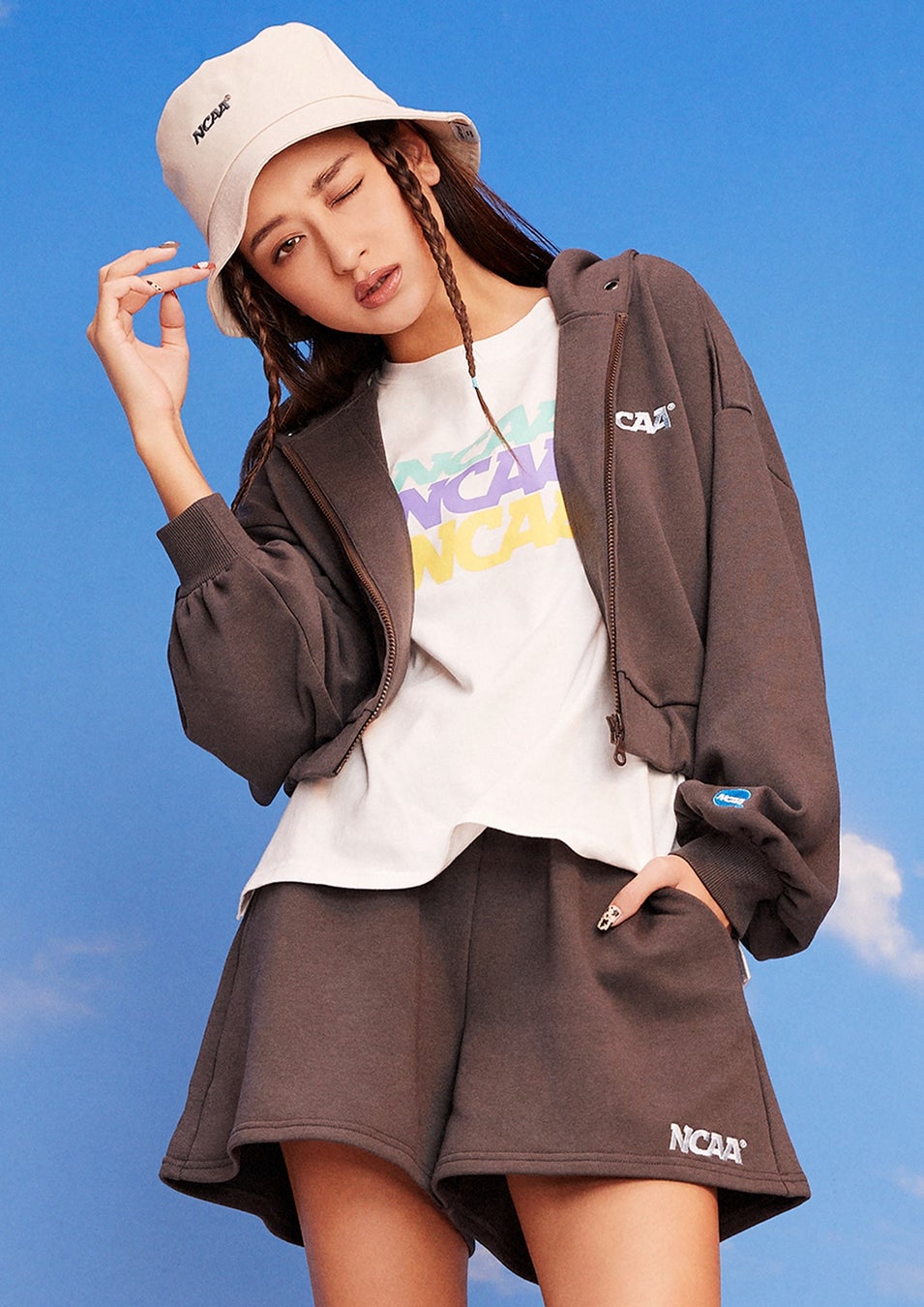 短丈のセットアップはスウェット生地でゆったり着れるアイテム。