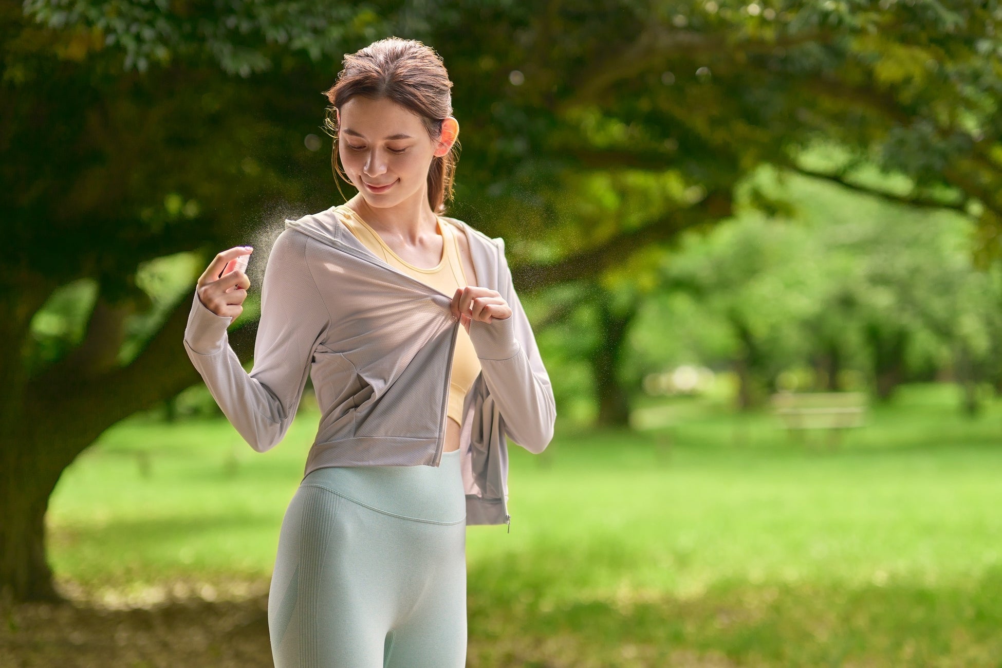 内容成分は水と天然由来でアレルギーを引き起こしにくいミネラルのチタンだけ。アルコールや香料ほか化学物質は一切入っていないという、人と環境に優しい成分だけで出来ていますので、服を着た上からスプレーして肌や髪についてしまってもベタベタせずに安心です。また、人の眼球や皮膚に触れても無刺激・無害であることが確認されています(※1)。