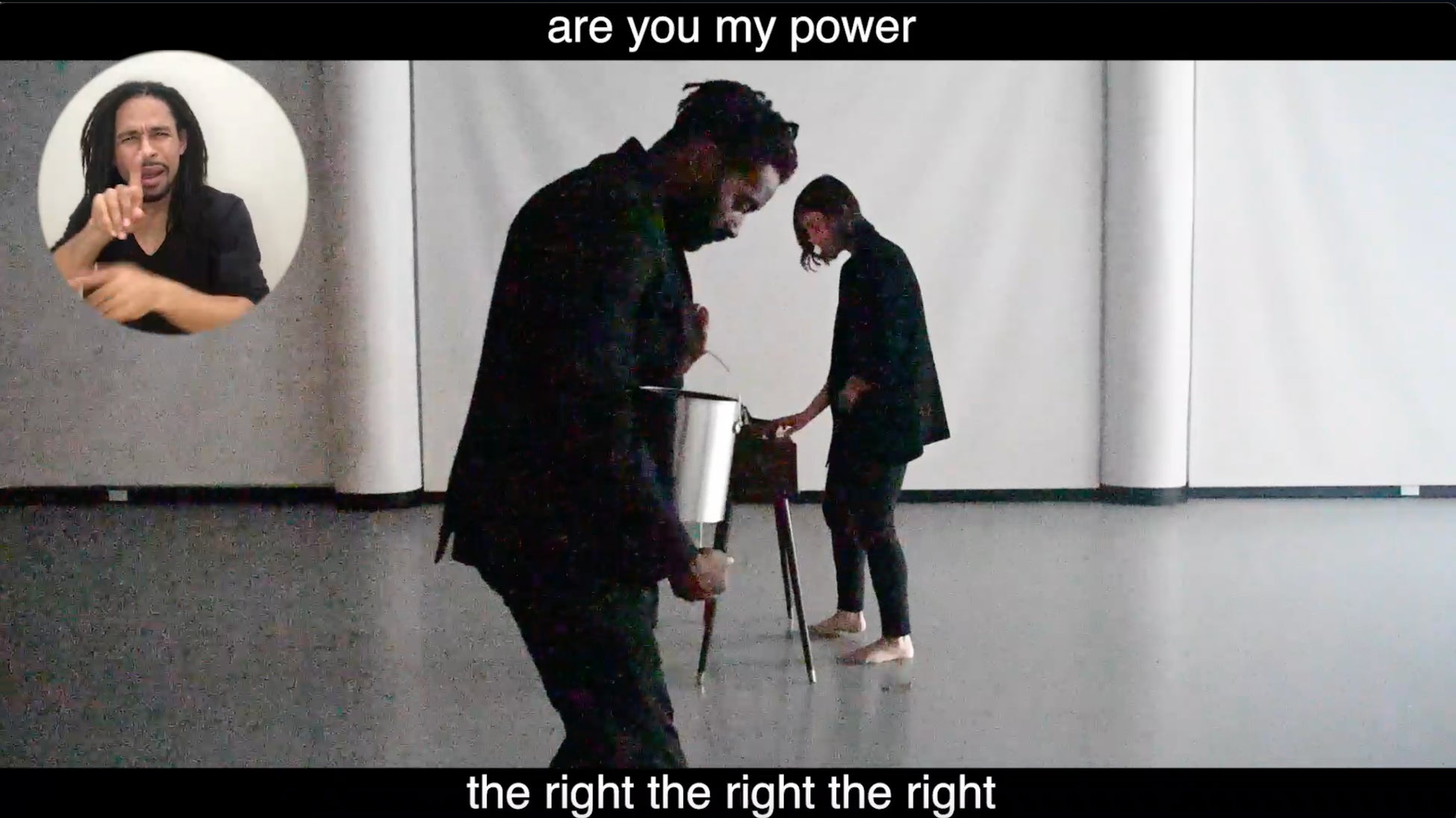アメリカの障害のある若手アーティストの中で最も注目を集めるアーティスト、Molly JoyceとJerron Hermanを中心としたコラボレーションの第一弾。Joyceはアクセシビリティにおいても精力的に活動しており、本作品では音声解説者のMax Graysonとニューヨークのアートシーンで広く知られるASL(アメリカ手話)通訳者のBrandon Karen-Maddoxが、作品と併走しています。作品はいくつかのセクションに分かれ、パフォーマンスと映像言語、アクセシビリティの関係において少しずつ異なる実験が行われています。音楽とダンスという主に非言語の芸術形式の翻訳をパフォーマンスに含めるあり方について考えるきっかけになればと思います。