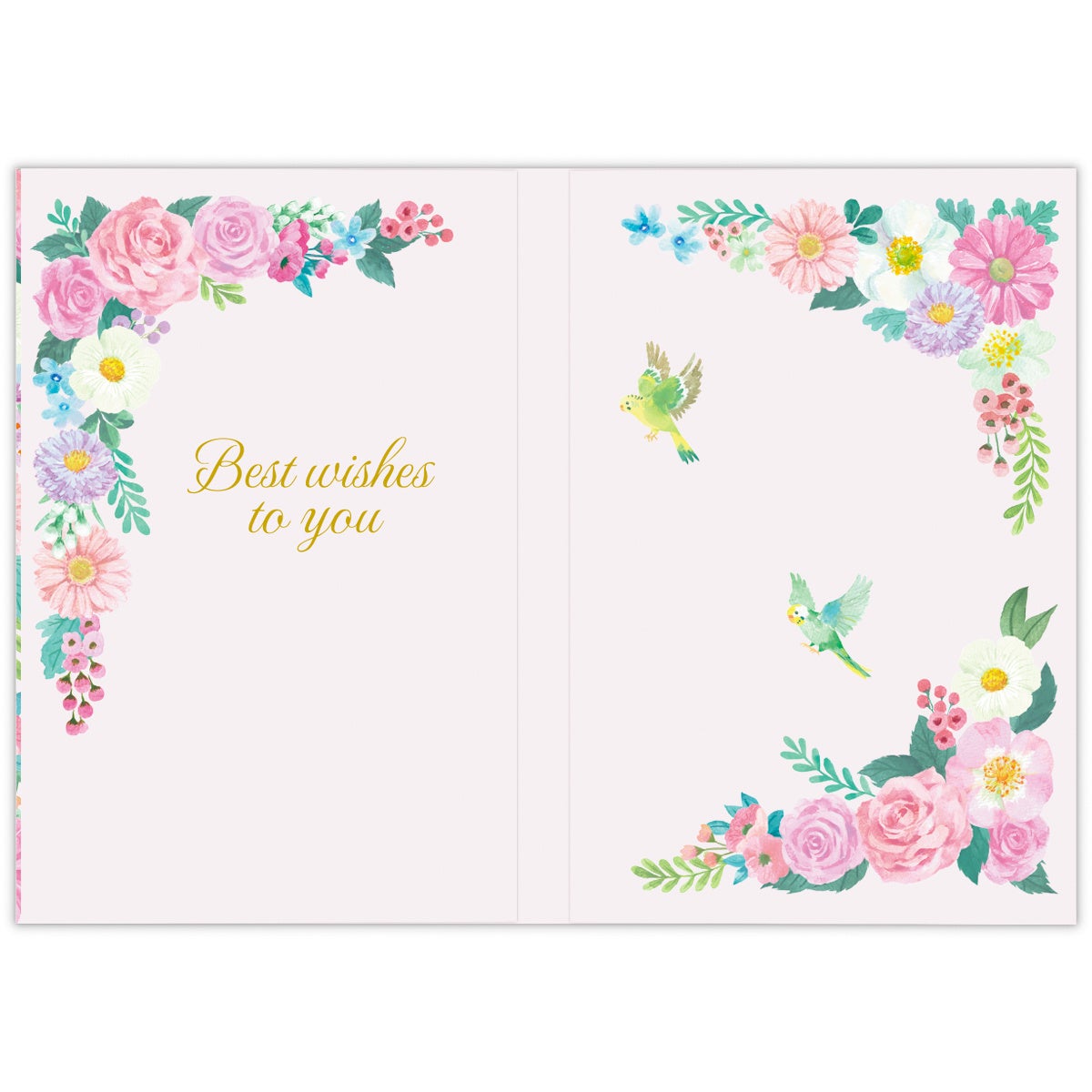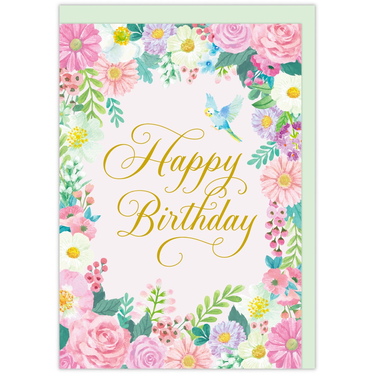100年以上の歴史を持つホールマークの豊富なアートワークから、選りすぐりのデザインで展開される「Hallmark Art Collection(ホールマークアートコレクション)」。ピンク基調の花々をたっぷりあしらった中に、さりげなく描かれたインコがアクセントです。ゆったりとしたピアノアレンジのバースデーソングが楽しめます。