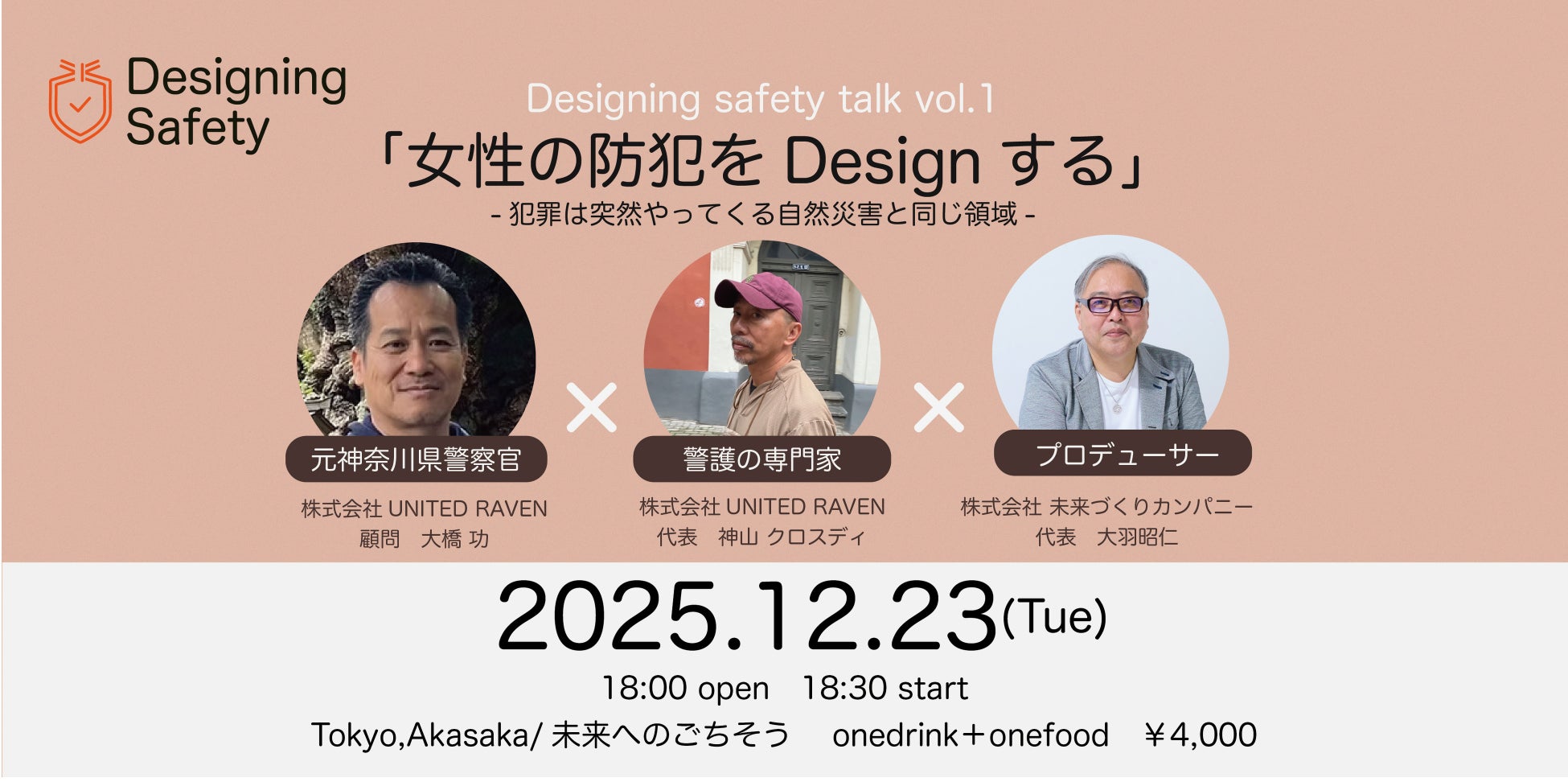 その第一弾として、2025年12月23日(火)にvol.1「女性の防犯をDesignする」 を開催します。
