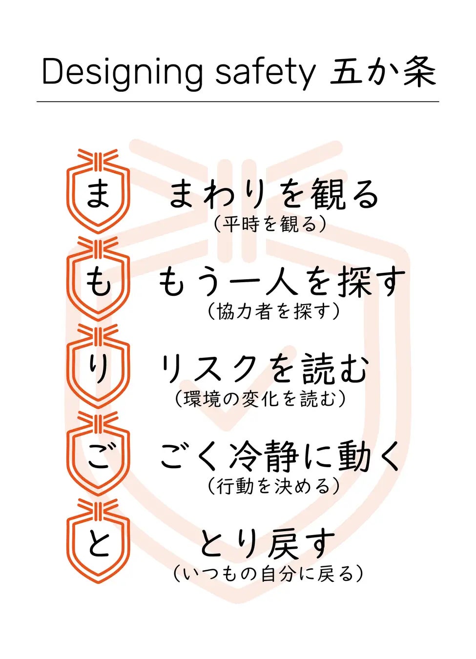 その中心となるのが、日常の安全行動を体系化した 「Designing Safety 五か条(まもりごと)」 です。