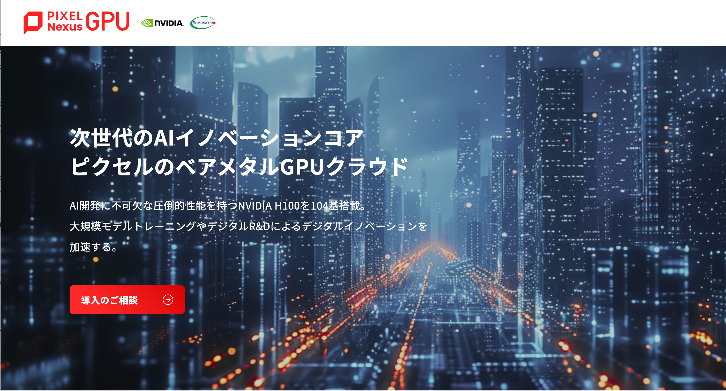 ピクセルカンパニーズ、NVIDIA H100を搭載したベアメタルGPUクラウド「PIXEL Nexus GPU」サービスサイトを公開