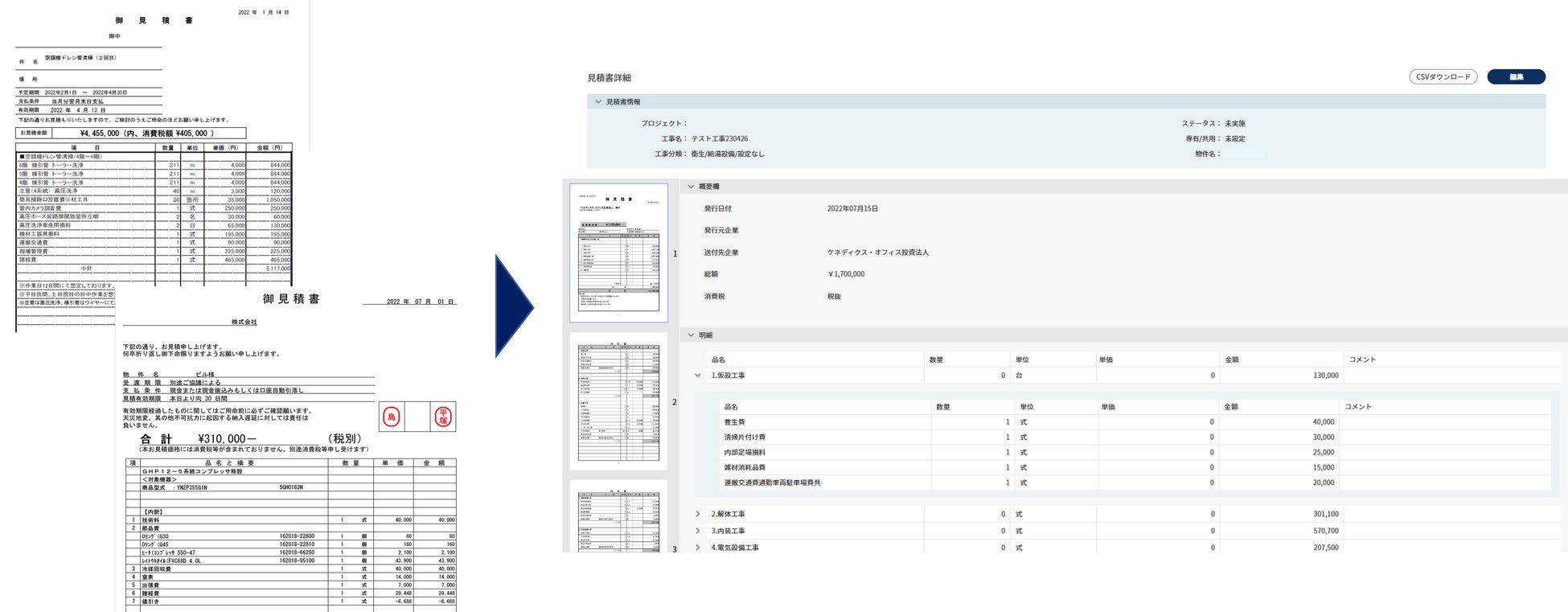 ~工事見積書の読み取りやデータベース構築が可能、発注適正化や業務効率化に貢献~