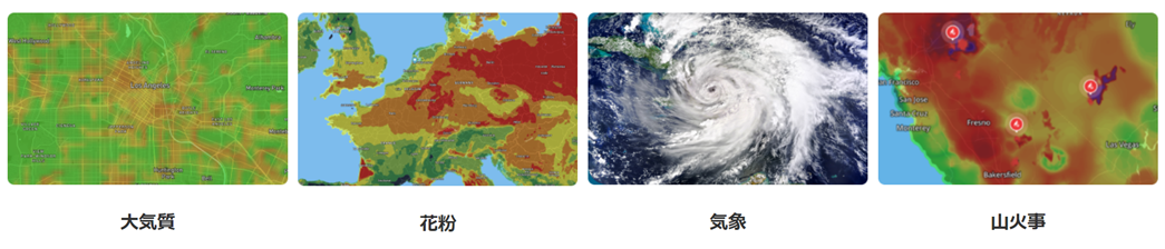 ビジネス研究の分野では、医療機関や保険会社などで、自社のビジネスデータと環境データの相関関係を調べるために、過去の環境データを用いて調査が行われています。医療研究の分野では、様々な医療系研究会社が、エンドユーザーに予防医療商品を提供するためのアレルギーリスク指標など、様々なビジネスケースにおいて過去のデータを用いて予測モデルを構築しています。マーケティング関連、メディア関連企業では、環境情報を使ってデータを時系列での傾向や変化に関するインサイトに変換し、エンゲージメントや売上をさらに向上させています。
