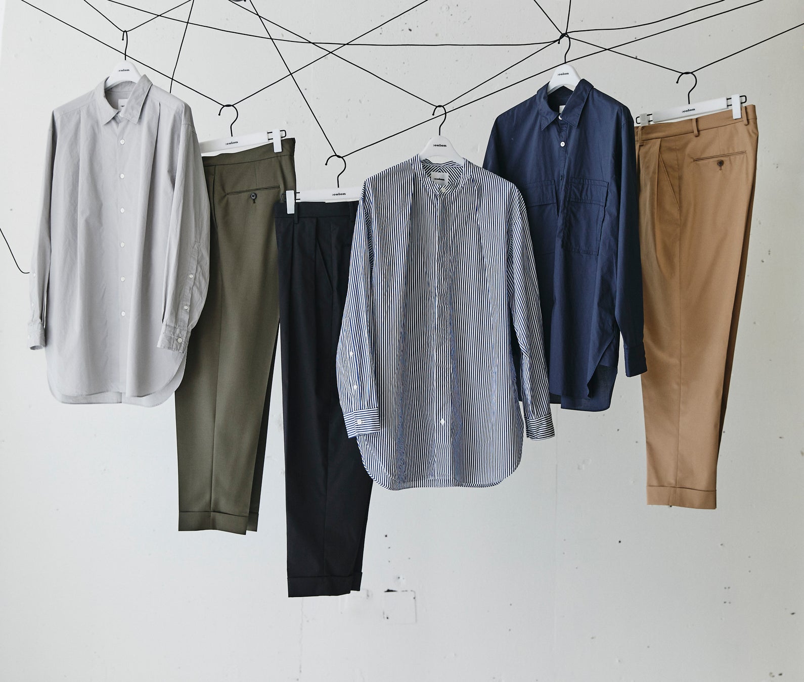 2022年春夏シーズンよりスタートした「:Colon」。ファーストシーズンは男性のワードローブに欠かすことのできない「シャツ」と「パンツ」でバリエーションを組みました。