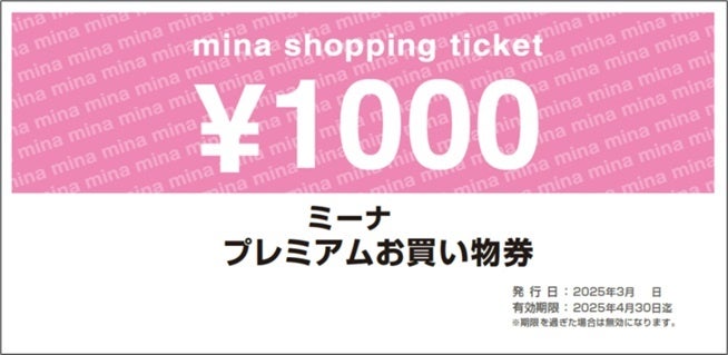 ※実際の「ミーナ プレミアムお買い物券」には販売を行なう館ごとに、館の名称(ミーナ天神、ミーナ京都、ミーナ町田、ミーナ津田沼)が表面に印刷されます。