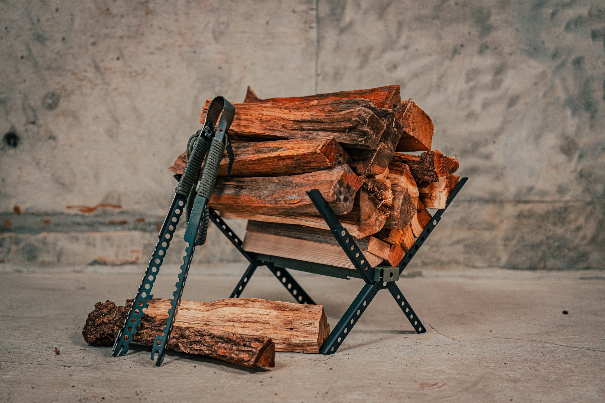床から薪を持ち上げることで湿気を防ぎながら、洗練された見た目と機能性を両立。