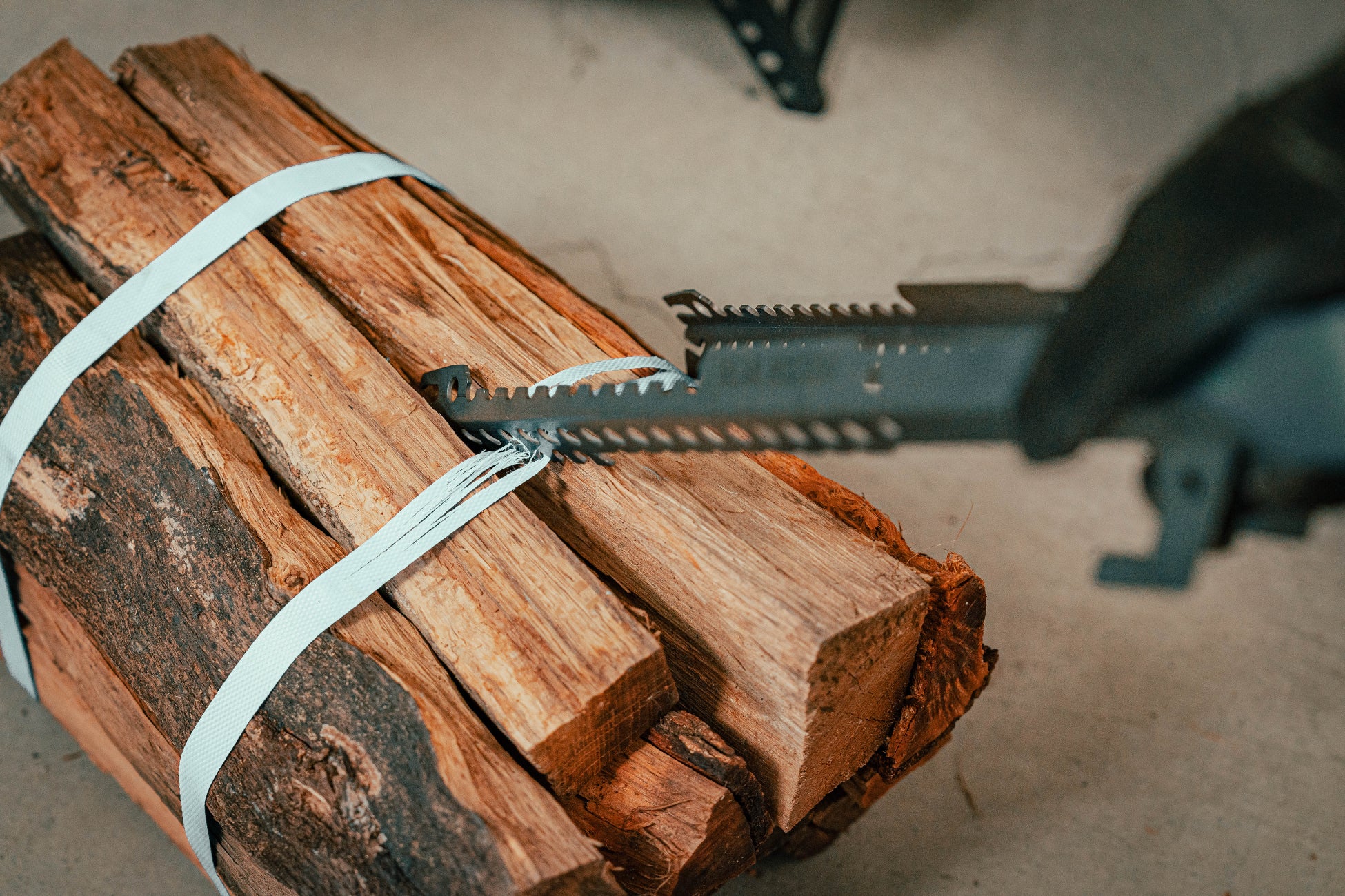 返し形状部分を使って、薪を束ねているPPバンドを切断し、散らばった薪や燃え残りをたぐり寄せることができます。フック部分を使ってテントペグを楽に引き抜けます。道具を増やさずに、様々な作業をこなせる便利さです。