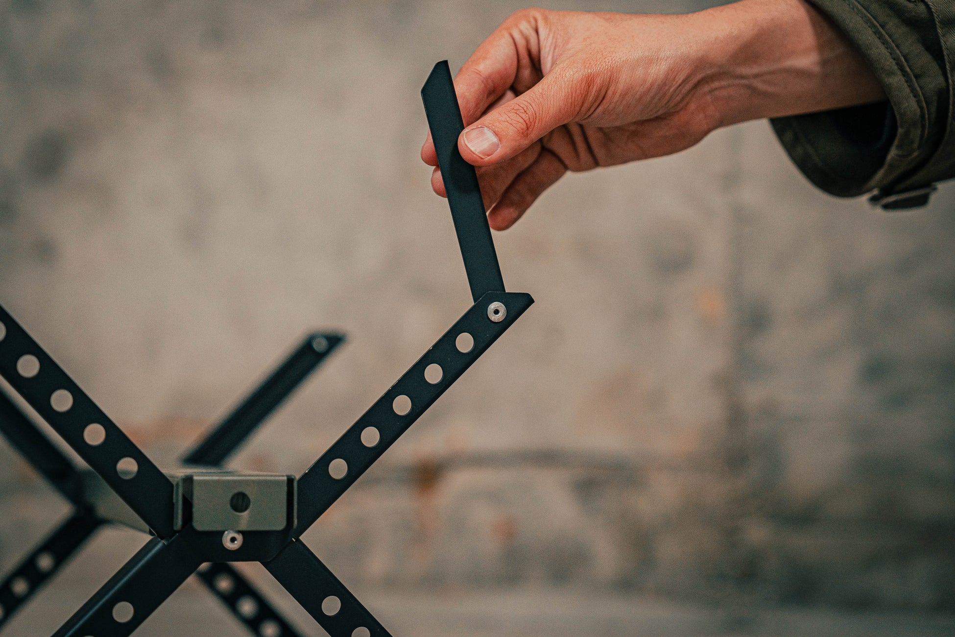 TIMBER BASEは、キャンパーの多様なニーズに応える高い柔軟性を持つ薪スタンドです。薪の量や長さに合わせて調節できる設計により、常に最適な状態で薪を管理できます。必要な時には頼もしく機能し、不要な時にはコンパクトに収まる、理想的な薪スタンドです。