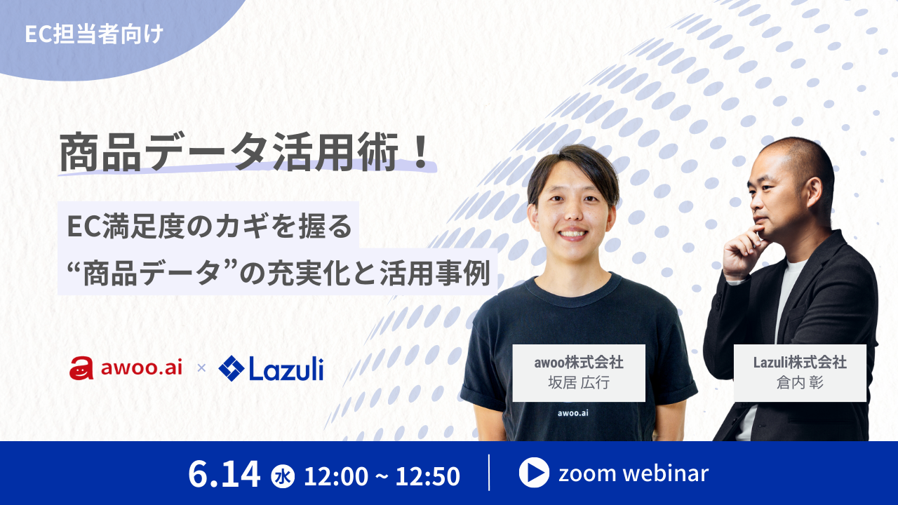 『商品データ活用術!EC満足度のカギを握る“商品データ”の充実化と活用事例』(awoo株式会社とLazuli株式会社の共催)に登壇