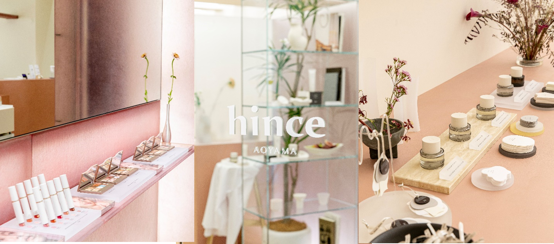 「hince AOYAMA」では、限定アイテムを含む発売中の全ての商品をラインナップしています。また、パーソナルタッチアップカウンセリングが受けられ、一人一人に合ったメイクをご提案します。